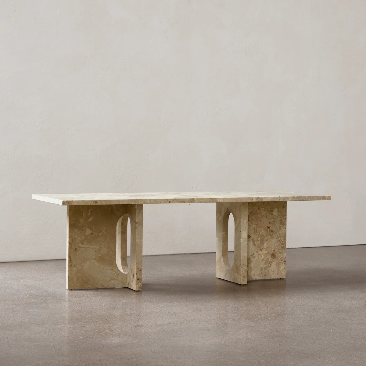 Der Androgyne Lounge Table von Audo fügt sich hervorragend in jeden Lounge Bereich ein und sorgt für einen echten Blickfang im Ambiente. Aus Kunis Breccia-Stein gefertigt, erhält der Tisch durch die Maserung eine natürliche Erscheinung und wirkt aufgrund seiner markanten Form dennoch charakteristisch. Die Kombination aus runden und geraden Formen macht Tisch zu einem stilvollen Möbelstück mit starkem Ausdruck. Eleganz und kraftvoll, männlich und weiblich gleichermaßen - das Wesen des Tisches ist seine Dualität.