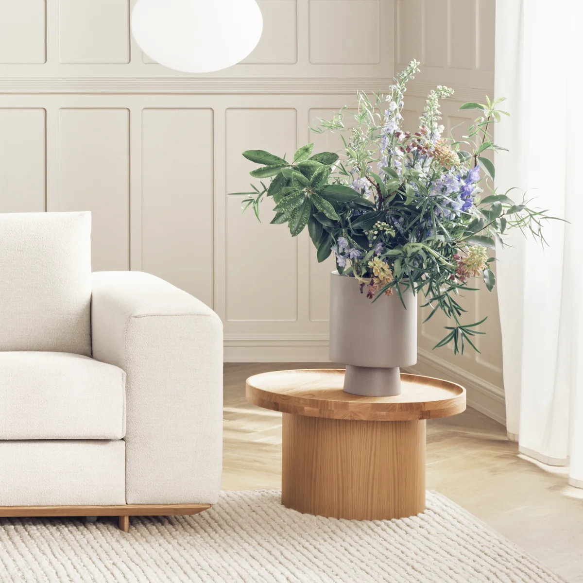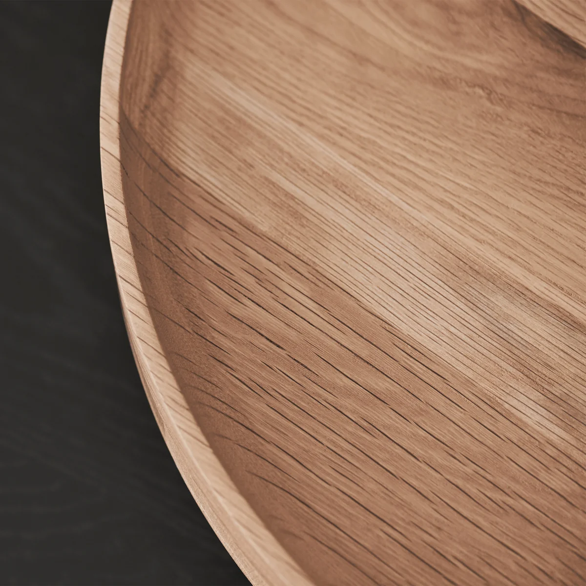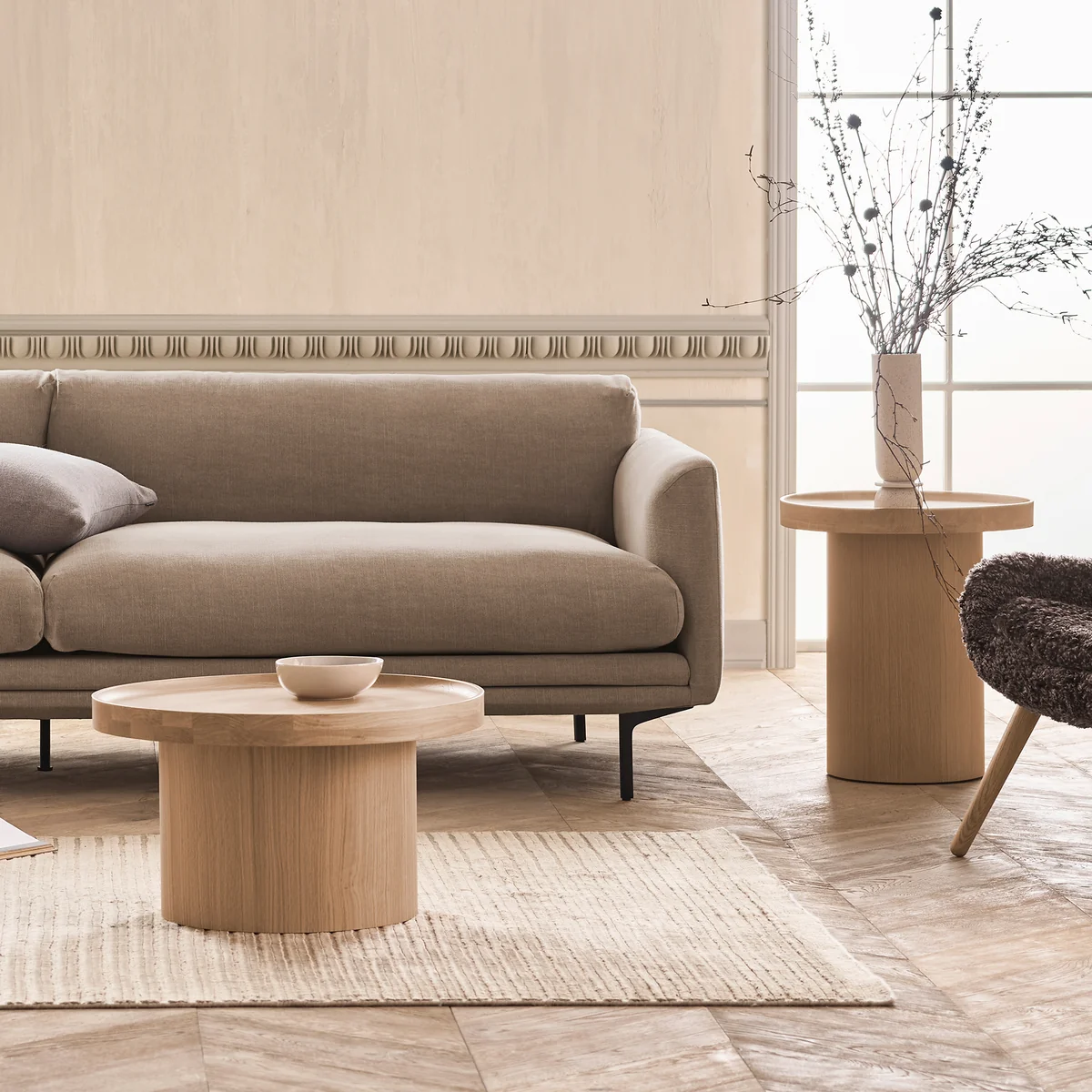 Der Plateau Couchtisch, entworfen vom Büro Famos für Bolia, beschränkt sich auf nur zwei einfache Holzelemente: einer Platte und einem Untergestell. Die Platte besteht aus Massivholz und wird präzise gefräst, um die elegante Kante zu formen, die das gesamte Design umrahmt. Diese markante Kante betont nicht nur die hohe handwerkliche Kunst des Tischlerhandwerks, die in der gesamten Serie sichtbar ist, sondern schafft auch ein wunderbar ausgewogenes Design.