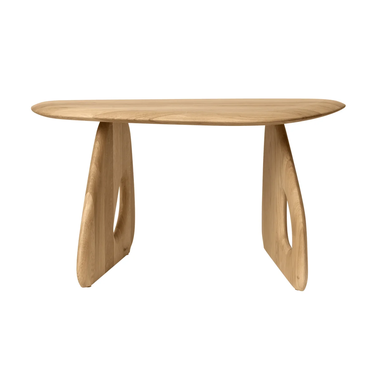 Der Oar Couchtisch von Ferm Living verbindet Eleganz mit durchdachtem Design. Mit sanften, fließenden Kurven und einer originellen Aussparung in den Beinen ist der Tisch ein wahrer Blickfang. Gefertigt aus FSC®-zertifizierter, massiver Eiche mit einer natürlich geölten Oberfläche, wird er durch die Messingfüße ergänzt, die nicht nur Raffinesse verleihen, sondern auch für Stabilität auf unterschiedlichen Untergründen sorgen.