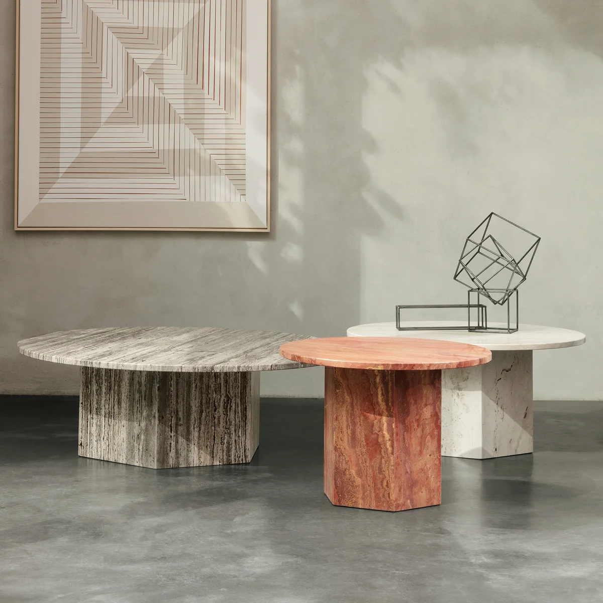 Der Tisch besteht aus zwei klassischen, geometrischen Formen: Dem sechseckigen Fuß und der runden Tischplatte. Die verschiedenen Größen, Durchmesse, und die aufregenden Farben machen es möglich, diesen skulpturalen Tisch mit weiteren Epic Tischen von Gubi zu einem außergewöhnlichen Ensemble zu kombinieren.