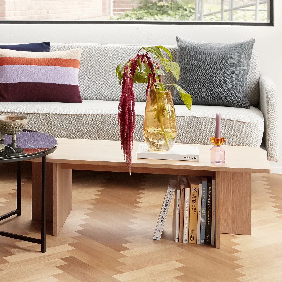 Der Split Couchtisch von Hübsch Interior verbindet natürliche Materialien mit klarer Formensprache. Gefertigt aus FSC®- zertifiziertem Eichenfurnier, bringt er Wärme und Ruhe in den Raum und fügt sich mit seinem zeitlosen, minimalistischen Design harmonisch in unterschiedliche Wohnstile ein. Die robuste Konstruktion und die präzisen Linien machen ihn zu einem langlebigen wie ästhetischen Mittelpunkt im Wohnzimmer.