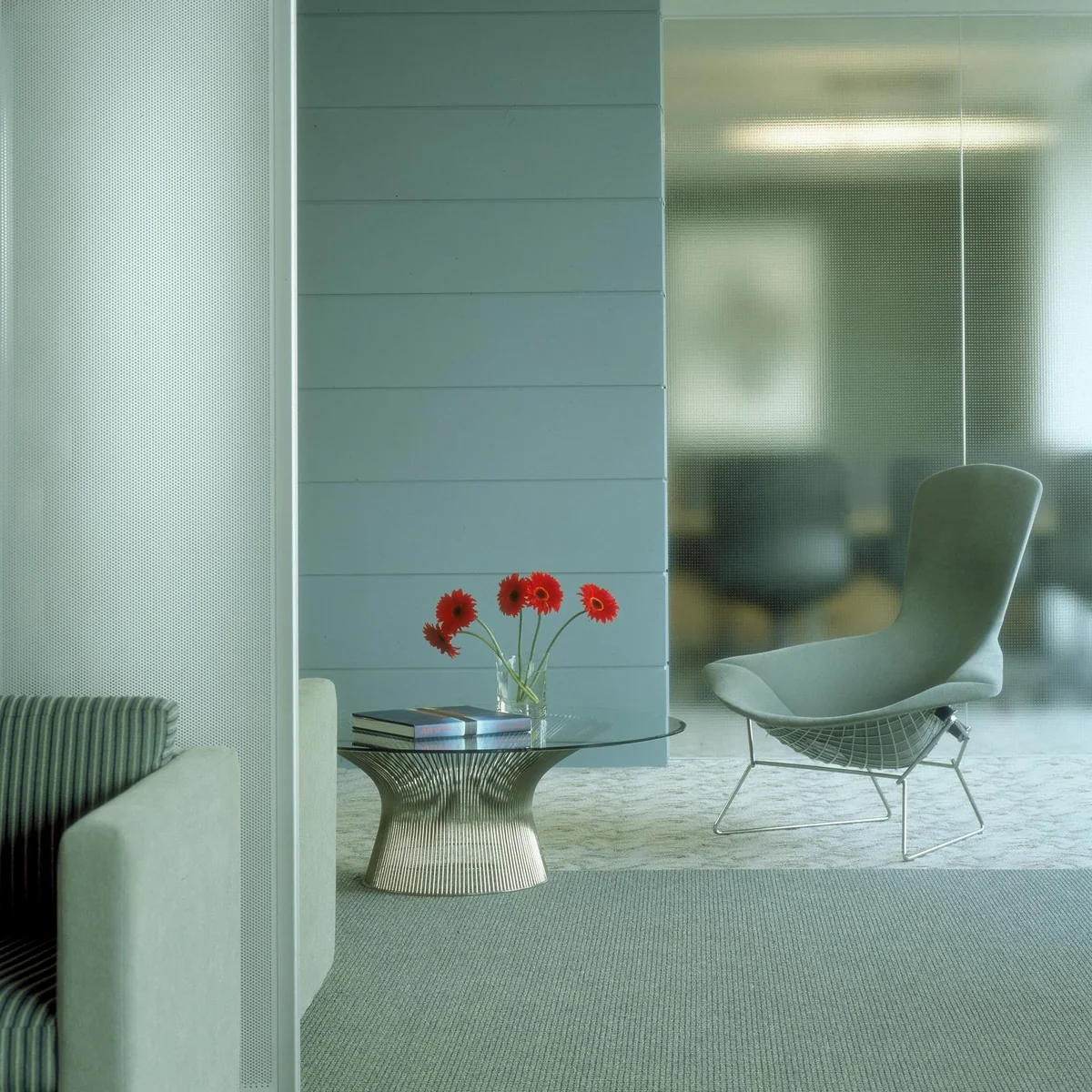 Der Platner Couchtisch von Knoll, entworfen von Warren Platner, ist ein ikonisches Designstück, das durch seine elegante Kombination aus poliertem Nickel und klarem Kristallglas besticht. Der runde Tisch symbolisiert Platners berühmte Technik, Stahlstäbe kunstvoll zu biegen und zu verschweißen, sodass eine filigrane, skulpturale Basis entsteht, die Stabilität und Leichtigkeit vereint. Die glatte Glasplatte setzt das komplexe Design gekonnt in Szene und schafft ein faszinierendes Spiel aus Licht und Schatten. Ein zeitloses Statement-Stück für jeden Raum.