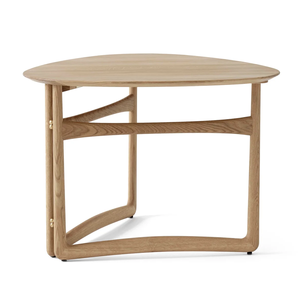 Mit dem Ziel, ein vielseitiges Möbelstück zu schaffen, das sich an seine Umgebung anpasst, entwarf das Design-Duo Hvidt & Mølgaard 1956 den Drop Leaf HM5 Couchtisch von &Tradition. Als Teil der Serie Drop Leaf mit Tischplatten in Blattform verfügt der Couchtisch über die gleichen geschwungenen Holzrahmen wie der große Esstisch und ein leicht faltbares Design. So wird der Couchtisch vor dem Sofa oder Sessel im Wohnbereich zum Hingucker und lässt sich bei Bedarf schnell und einfach kompakt zusammenklappen.