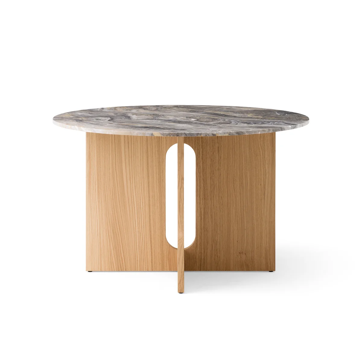 Wie ein prachtvolles Monument verbindet der Androgyne Esstisch von Audo auf eindrucksvolle Weise natürliche Materialien. Als Weiterentwicklung der Androgyne Kollektion verhilft er der Silhouette des Couchtisches zu größeren Proportionen.