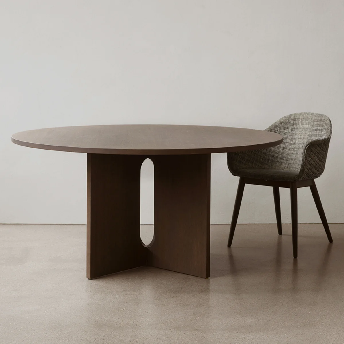 Der Androgyne Tisch von Audo ist ein Entwurf von Danielle Siggerud und zeichnet sich durch seine skulpturale Gestalt aus. Die Auswahl natürlicher Materialien wie Eichenholz und Sandstein hat eine auffällige Wirkung, während die Form charakteristische Akzente setzt. Die Kombination aus runden und geraden Linien sorgt für einen spannungsreichen Kontrast und macht den Tisch zu einem besonderen Möbelstück im Ambiente. Eleganz und kraftvoll, männlich und weiblich gleichermaßen - das Wesen des Tisches ist seine Dualität.