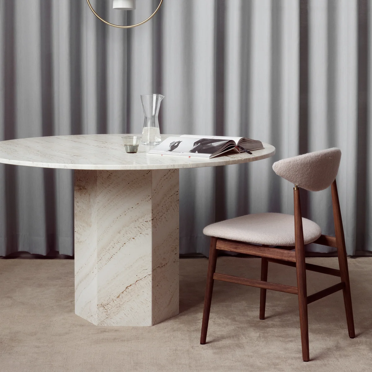 Der Epic Esstisch von Gubi ist ein in vielerlei Hinsicht außergewöhnlicher Tisch: Gefertigt aus wunderschönem Travertin Stein in Italien, ist das Design des italienisch-dänischen Designer-Duos GamFratesi von den Säulen des antiken Roms inspiriert. Der Name, Epic, lehnt sich an die Erzählungen und Sagen des Altertums an. Schreiben Sie Ihre eigene Design-Geschichte!