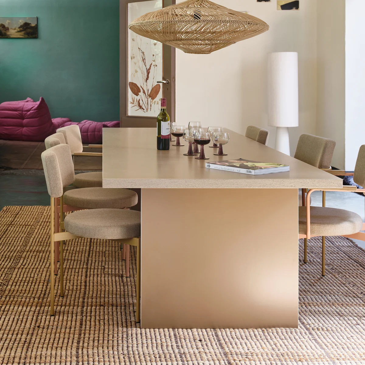 Der Esstisch aus dem niederländischen Hause HKliving bringt die gesamte Familie zusammen. Er ist in unterschiedlichen Größen und Farben erhältlich. Das zeitlose Designobjekt wird aus 70% Eorolight, 22% MDF, 7% HPL und 1% Metall gefertigt.