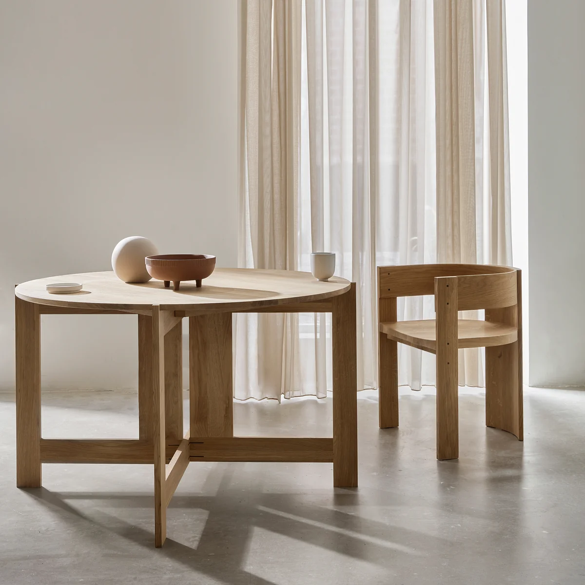 Der Collector Esstisch aus dem dänischen Hause Kristina Dam Studio begeistert mit seiner rustikalen Optik und der minimalistischen, schlichten Silhouette. Der Tisch besteht aus einem skulpturalen Fuß in X-Form, welcher die massive Tischplatte aus Eichenholz optimal balanciert. Collector ist dank seines minimalistischen Designs wunderbar für jegliche Wohnambiente geeignet. Die detaillierte Handwerkskunst des Tisches großartig aus jedem Blickwinkel zu erkennen und unterstreicht so zugleich die natürliche Schönheit des Eichenholzes.