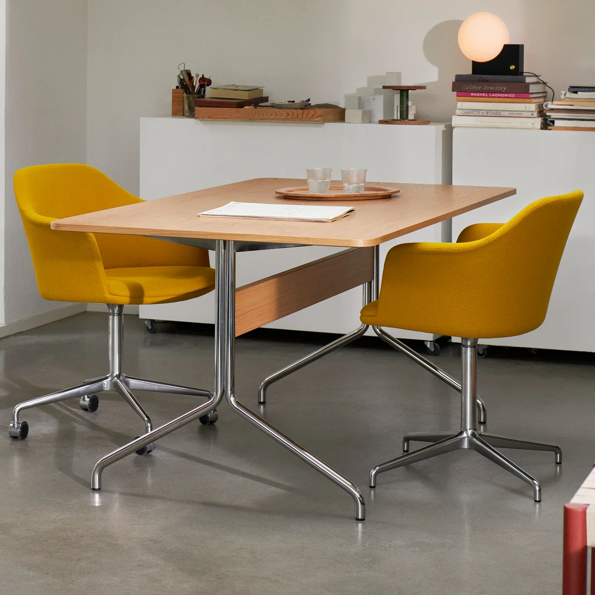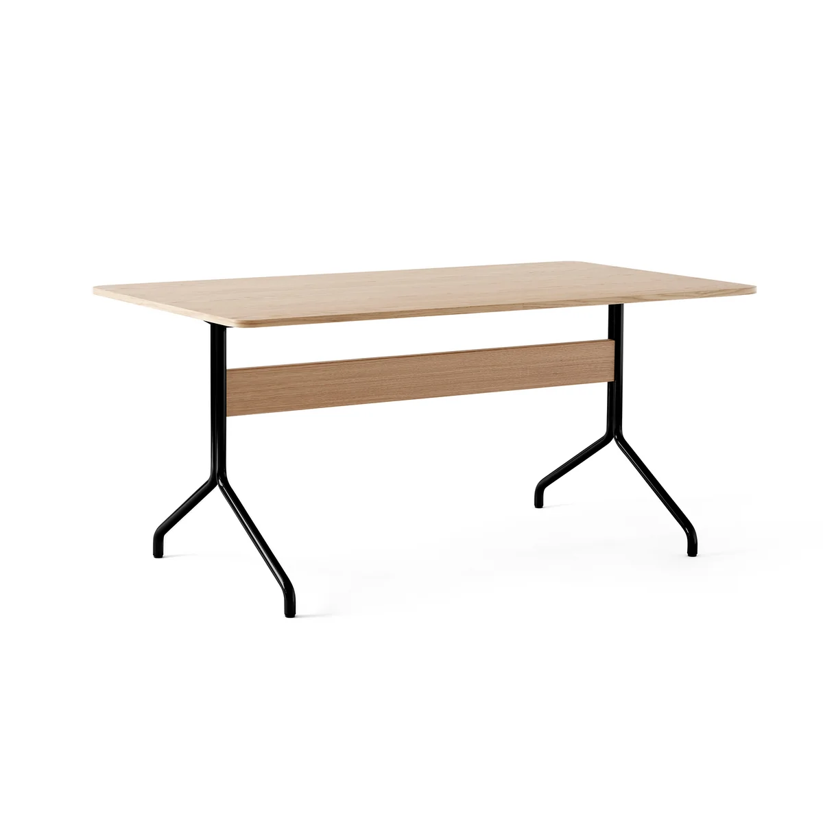 Der Pavilion Dining Esstisch aus dem dänischen Hause &Tradition kann vielfältig im Wohnbereich eingesetzt werden. Je nach Ausführung bietet der Tisch optimalen Platz für die liebsten Gäste. Er kann jedoch neben der klassischen Variante im Wohnzimmer ebenfalls im Arbeitszimmer als Schreibtisch eingesetzt werden. Pavilion besteht aus einer mit Lionoleum beschichteten Tischplatte mit furnierten Kanten. Die Beine werden aus gebogenen Stahlrohren gefertigt. Die Rückwand des Tisches wird aus formgepresstem Furnier hergestellt. In verschiedenen Größen und Holzvarianten erhältlich.