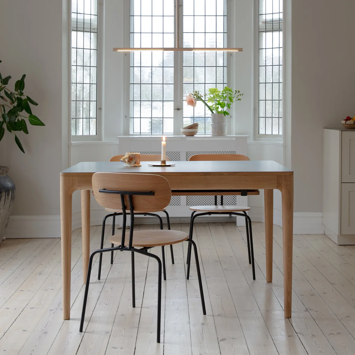 Der Heart'n'Soul Esstisch des Herstellers Umage ist eine minimalistische Fusion zwischen Form und Funktion. Der schlanke Esstisch lässt sich ausziehen und verleiht dem Esszimmer einen überaus eleganten Ausdruck. Besonders praktisch: Heart'n'Soul verfügt über zwei stoffbezogene Schubladen, in welchen ganz simpel Tischgedecke und Co. verstaut werden können. Gleichzeitig fungieren die Schubladen als Halterung für die Verlängerungsplatten des Esstisches. Die besagten Platten sind hinter dem Tisch versteckt und lassen sich ganz simpel an- und abmontieren.