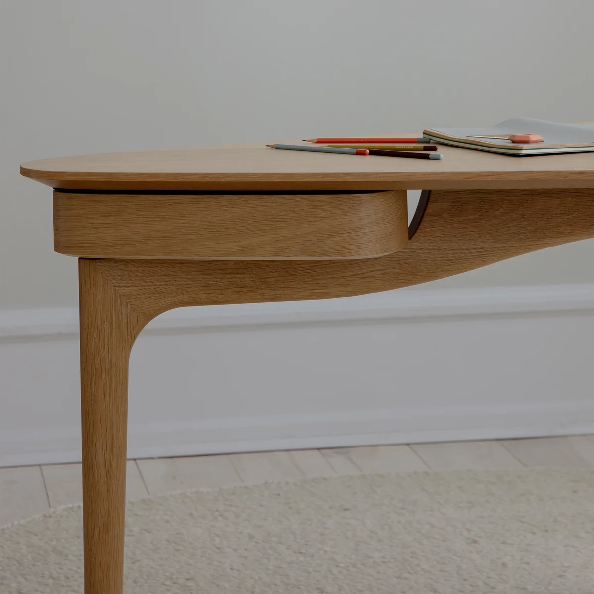 Schreibtisch mit weichen Linien aus Eichenholz