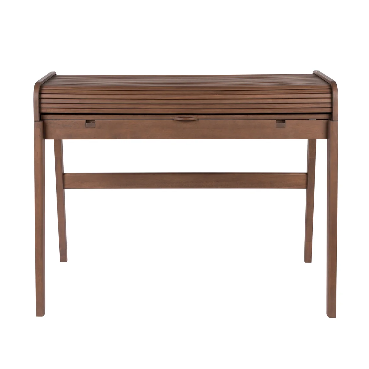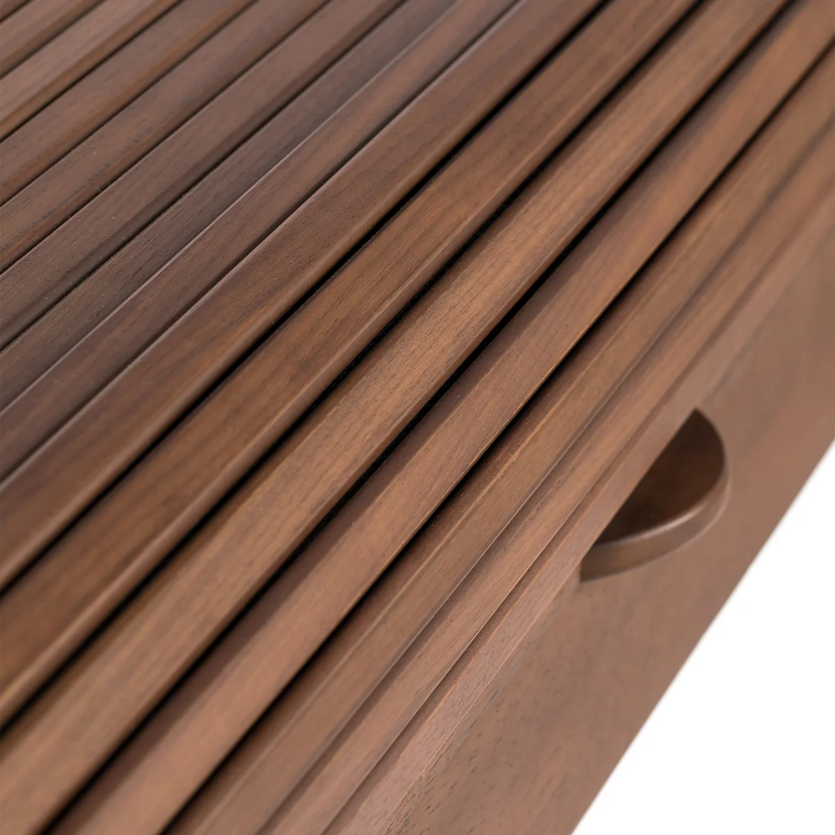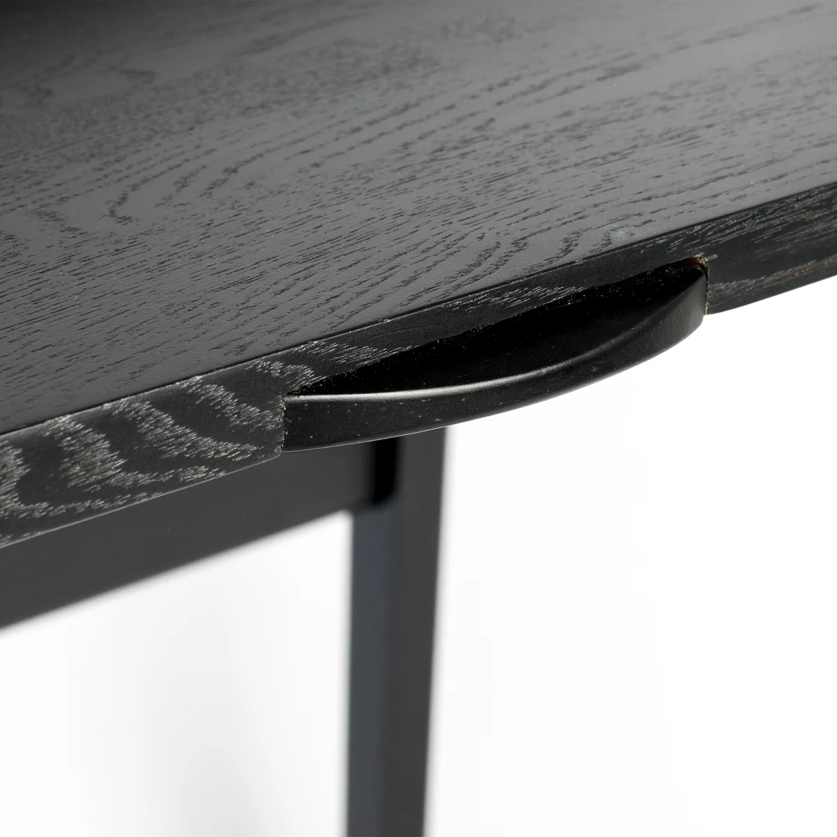 Gefertigt aus hochwertigem Echtholzfurnier mit sanft gerundeten Kanten und filigranen, konisch zulaufenden Beinen, verleiht der Barbier Schreibtisch jedem Raum eine warme, einladende Note. Das besondere Designmerkmal: eine verschiebbare Abdeckung mit feinen Rillen, die ein großzügiges Innenfach für Kabel, Notizbücher, Tablets oder andere Arbeitsutensilien verbirgt. So bleibt die Tischfläche stets aufgeräumt – ideal für fokussiertes Arbeiten.
