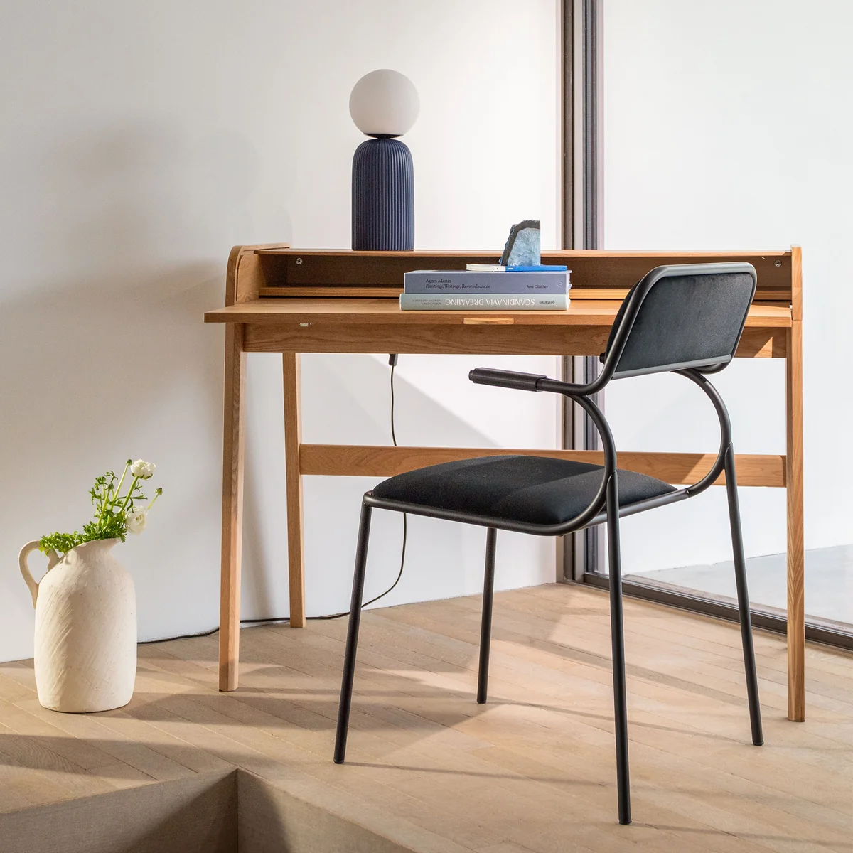 Dank seiner kompakten Maße passt der Schreibtisch hervorragend in kleinere Wohnungen, kreative Ateliers oder ins Wohnzimmer – ohne dabei an Funktion oder Design einzubüßen.