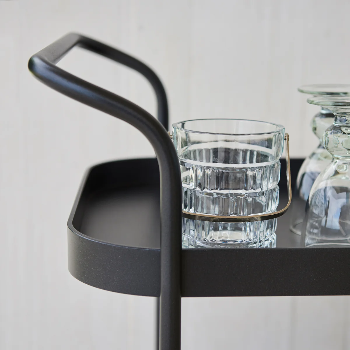 Der große Bar-Trolley in oval verfügt über zwei Ablageflächen, zwei Rollen und einem Griff zum Ziehen und Schieben. Außerdem ist der Rollwagen mit einem Einlegeboden aus Teakholz ausgestattet. Der große Trolley eignet sich bestens als Bar für den Innen- und Außenbereich oder als Ablage für Grillzange und Co. sowie für das Barbecue mit Freunden und Familie.