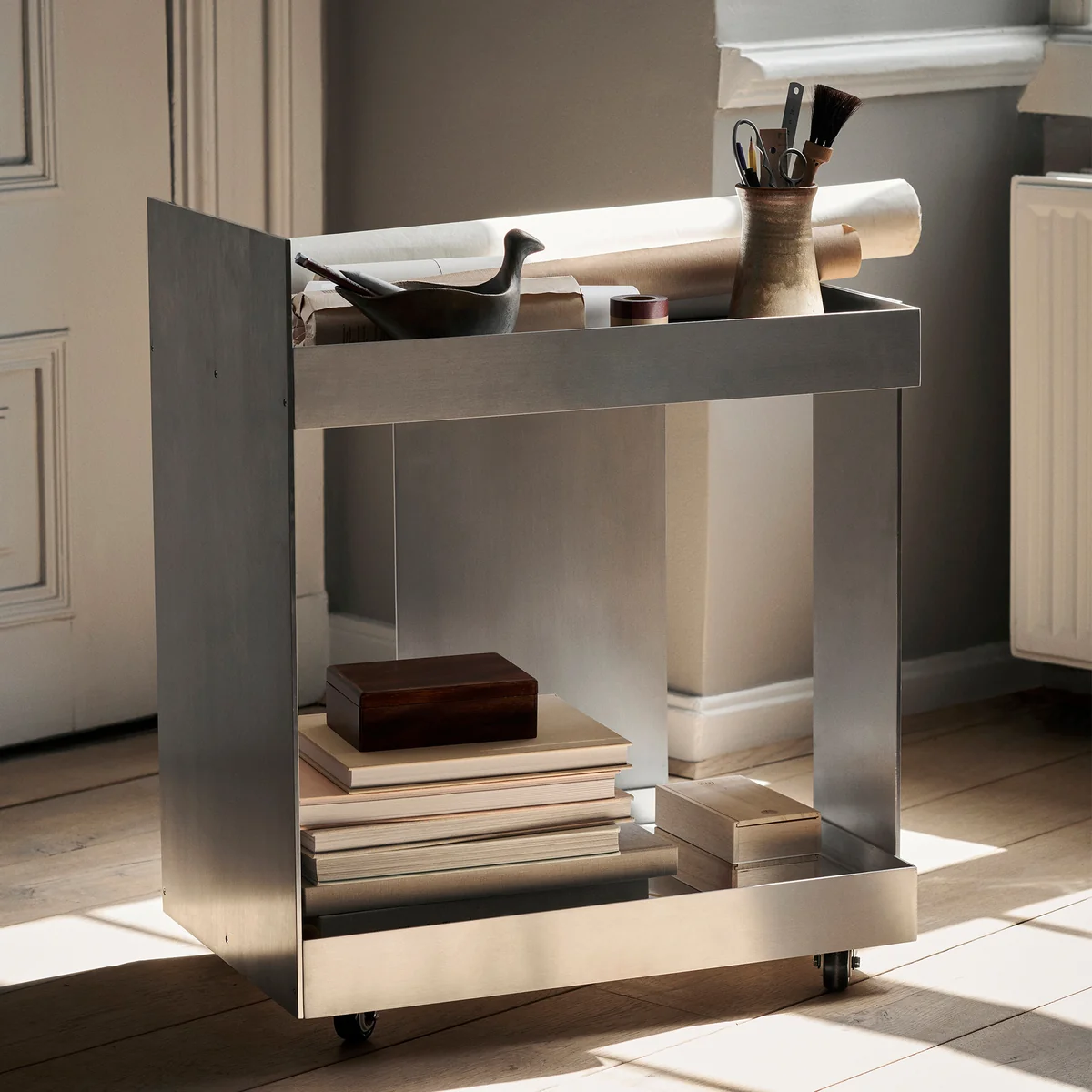 Der Lager Trolley aus dem Hause Ferm Living ist benannt nach dem dänischen Wort für "Lagerhaus" und zeichnet so auch seine Funktion aus. Die skulpturale Trolley dient als als wunderbare Ergänzung fürs Zuhause. Er kann ideal als stilvollen Barwagen, als vielseitigen Beistelltisch oder klassisch als Aufbewahrungsmöglichkeit im Arbeitszimmer genutzt werden.