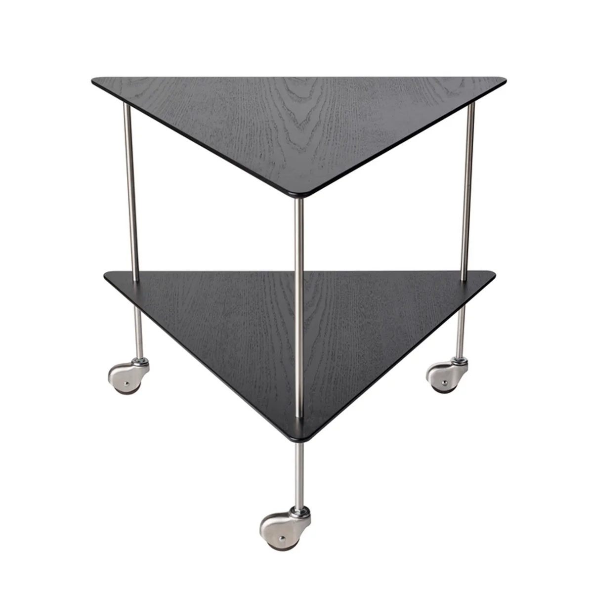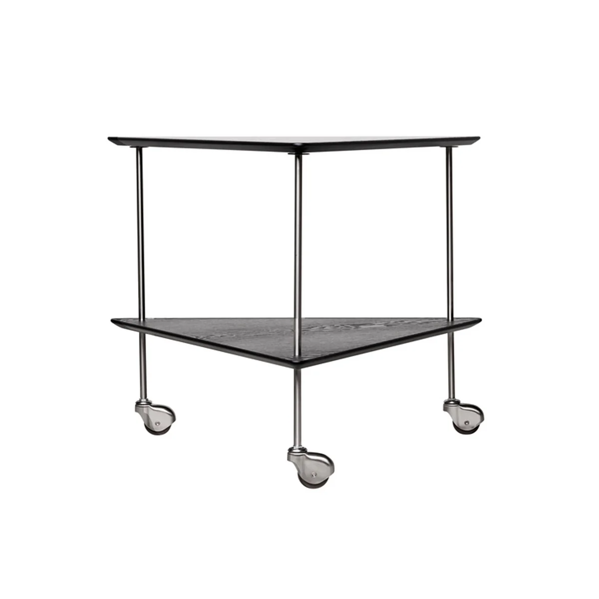 Der AJ Trolley Beistelltisch des dänischen Herstellers Fritz Hansen wurde von Arne Jacobsen ursprünglich für seinen Nachmittagstee entworfen. Dank seiner drei Rollen ist er aber genauso als Servierwagen, Barwagen oder Coffee Table anwendbar. Das schlichte und zeitlose Design fügt sich in jedes Wohnzimmer oder Schlafzimmer ein. Die dreieckige Form macht den Tisch zu einem platzsparenden Accessoire, auf dem sich Getränke sowie Bücher und Vasen gut machen.