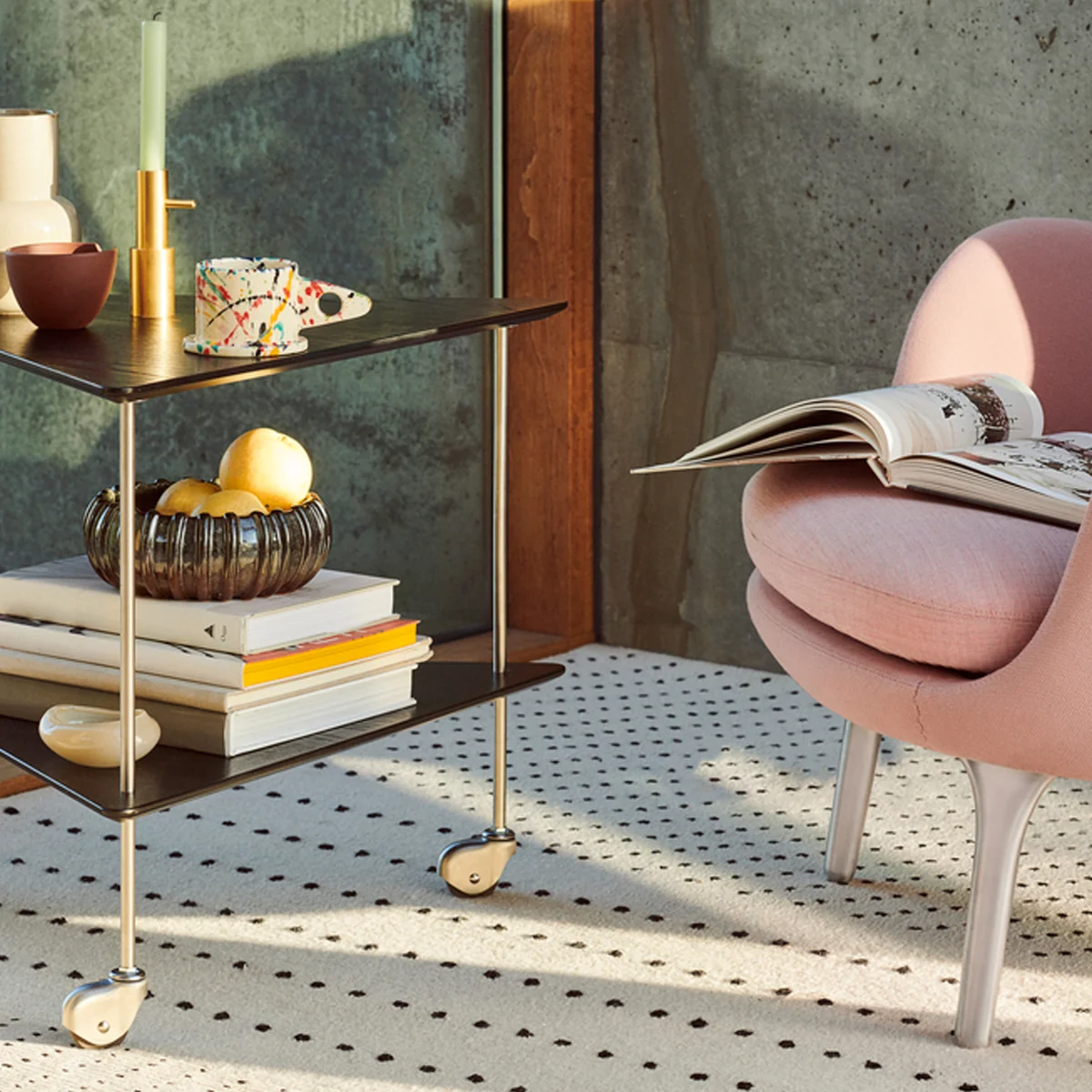 Zeitloser Beistelltisch auf Rollen