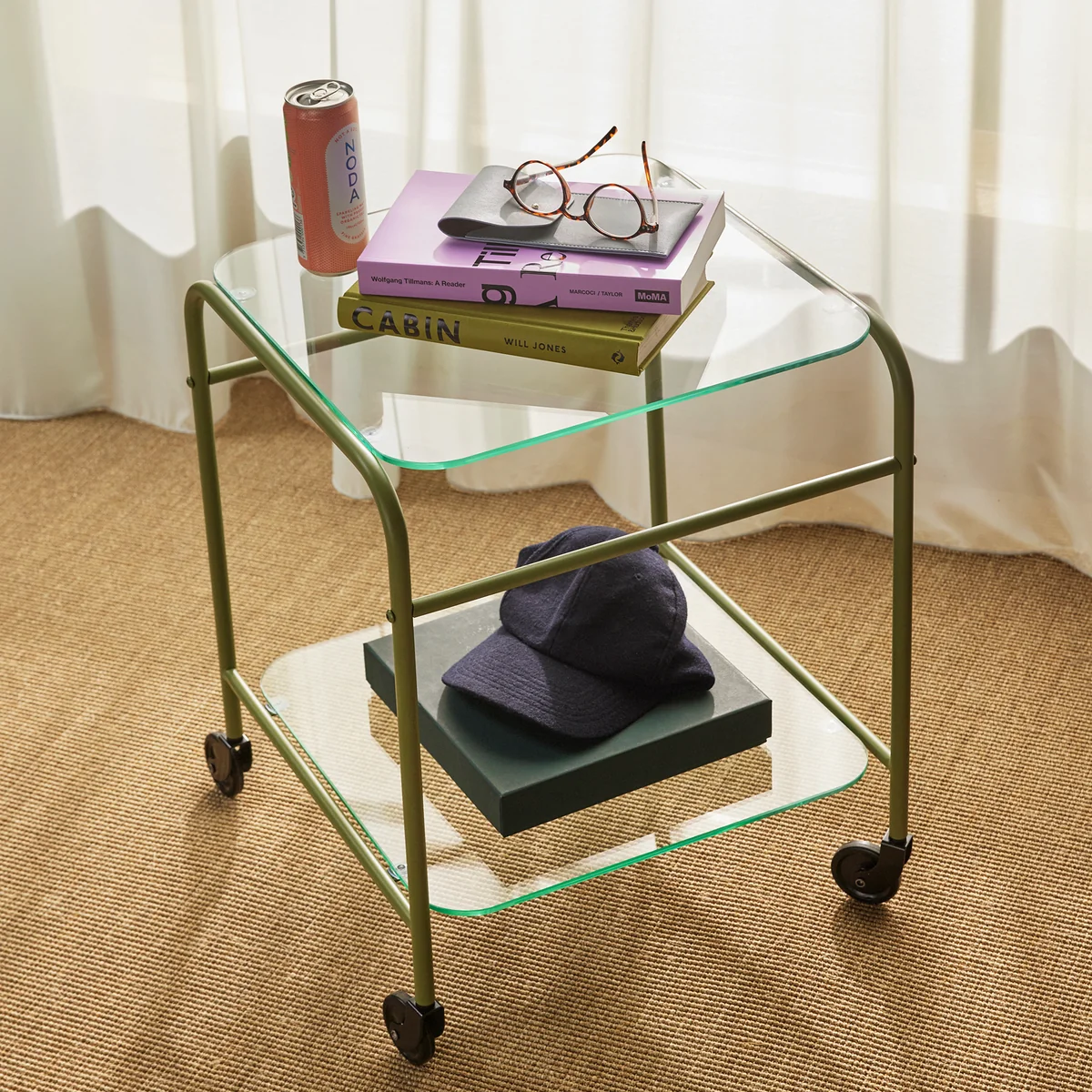 Der Zephyr Servierwagen überzeugt mit seinem zeitlosen Design und seiner vielseitigen Einsetzbarkeit. Ob als Barwagen im Wohnzimmer, als Beistelltisch im Esszimmer oder als praktische Ablage in der Küche – der Servierwagen fügt sich harmonisch in verschiedene Wohnstile ein. Das Gestell aus lackiertem Eisen und die Glasplatten verleihen ihm eine elegante Note.