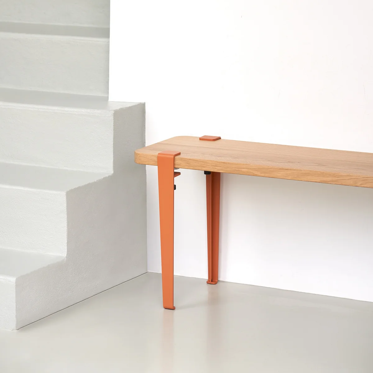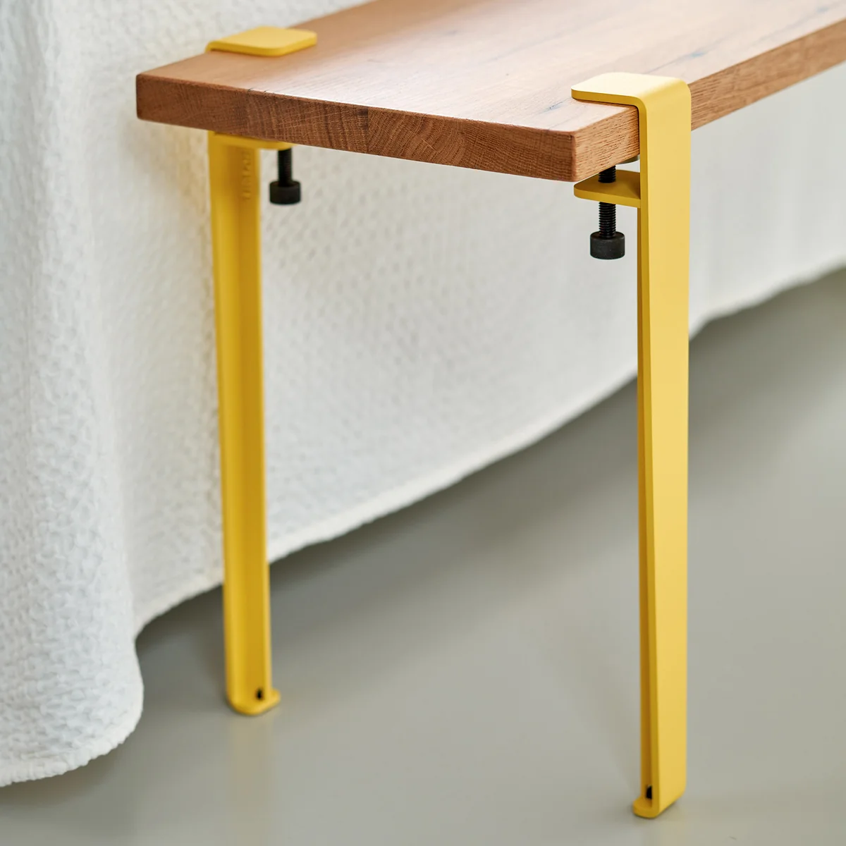 Das Couchtisch- und Bankbein des französischen Herstellers TipToe ist ein universell einsetzbares Designer-Objekt, das für niedrige Tische oder Bänke konstruiert wurde. So kann in Kombination mit einer runden oder rechteckigen Holzplatte daraus ein individueller Couchtisch oder eine Sitzbank gezaubert werden. Das Produkt begeistert nicht nur durch sein schlankes Design, das ein leicht industrielles Flair ins Wohnzimmer oder in den Flur bringt. Es wurde darüber hinaus aus nachhaltigen Materialien in Europa hergestellt und kann somit durch Langlebigkeit und Stabilität glänzen. Praktischerweise kann es bequem an die Kante der Holzplatte geklemmt und nach Belieben (auf eine andere Platte) verschoben werden.