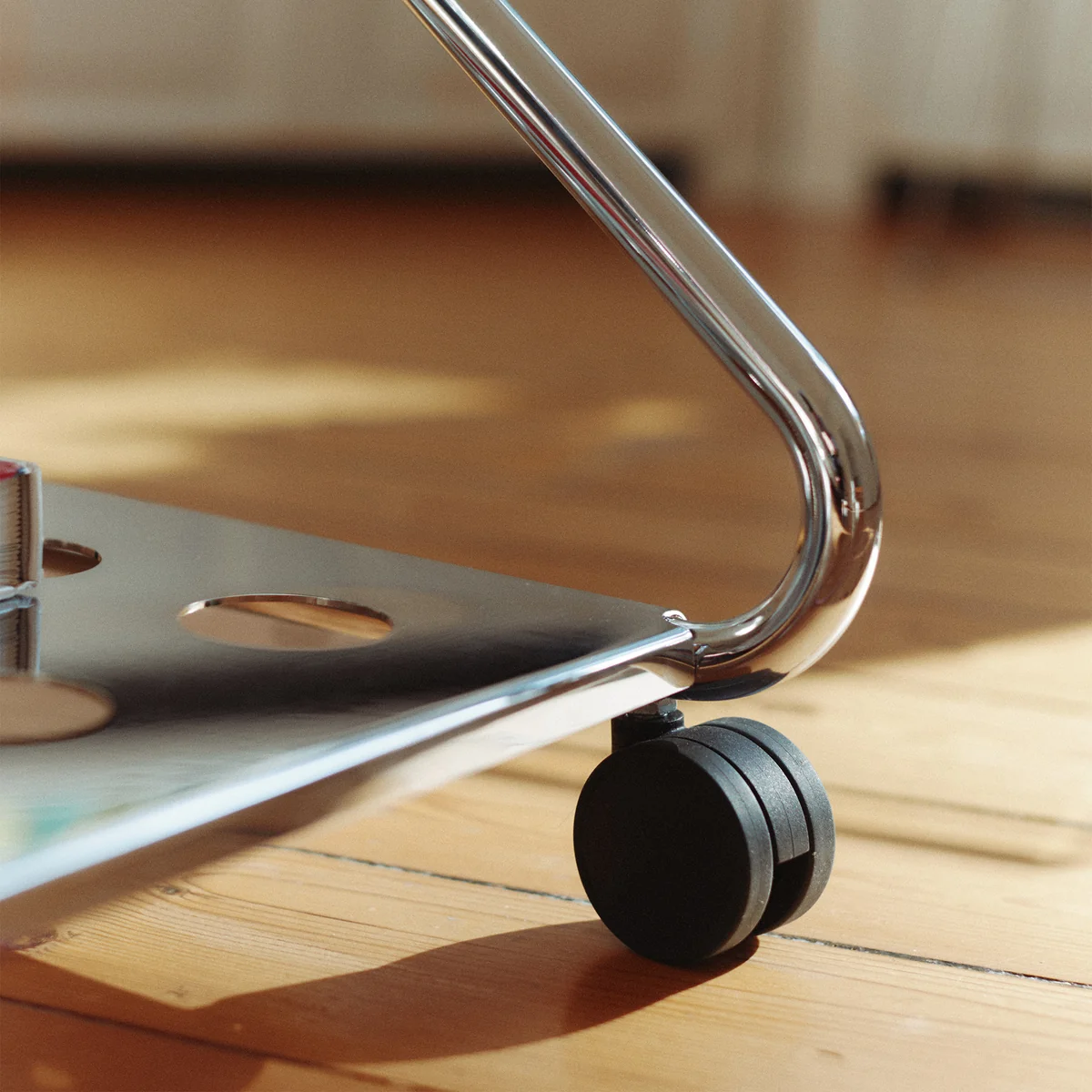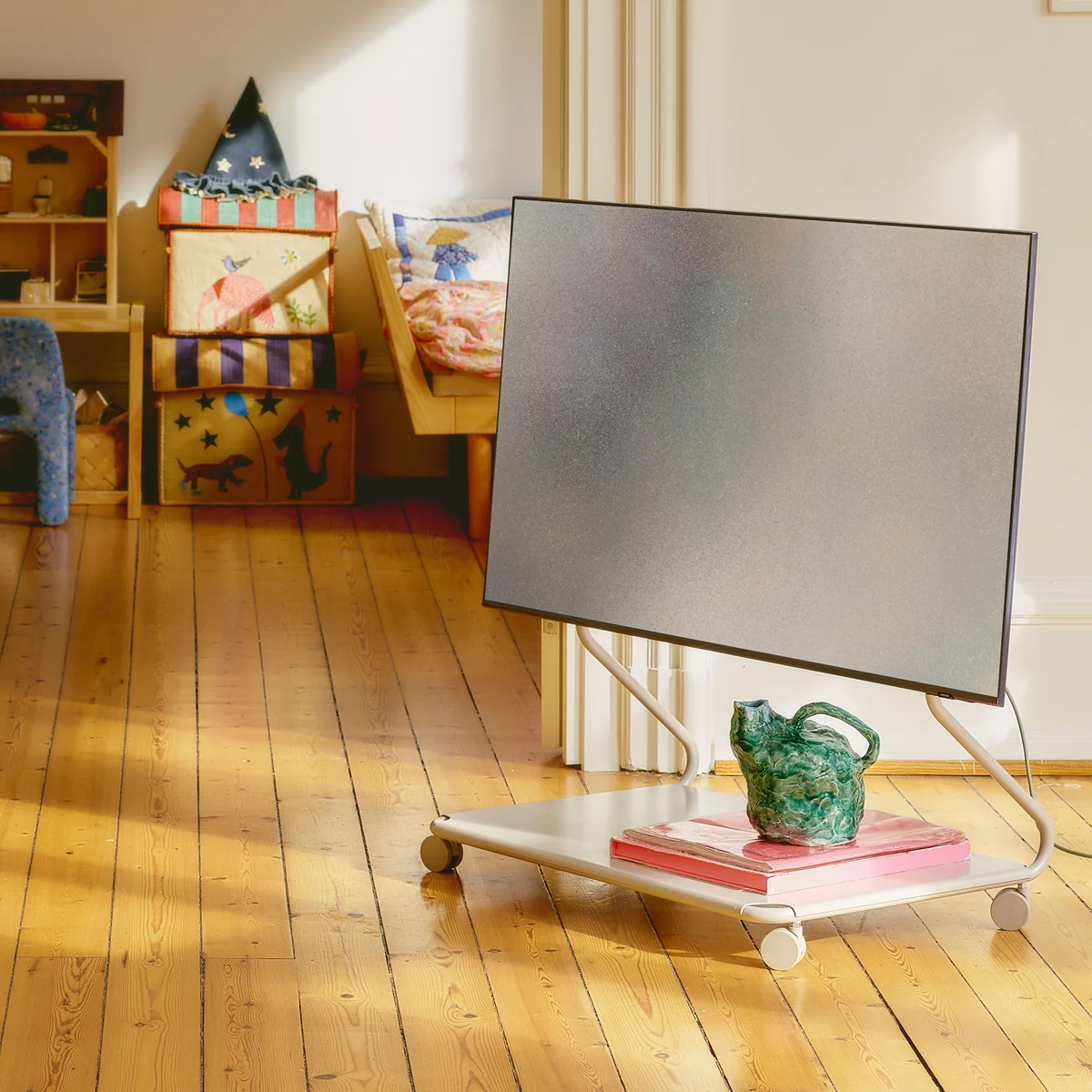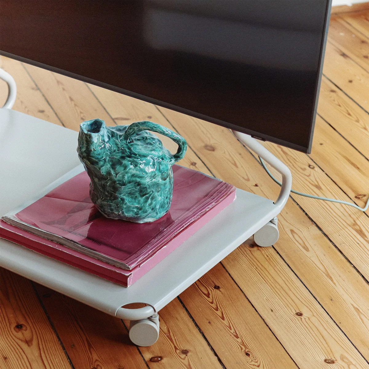 Gefertigt aus hochwertigem, pulverbeschichtetem Stahl mit einer satinartigen Oberfläche kombiniert der Disco TV-Ständer Langlebigkeit und minimalistisches Design. Die hochwertigen Möbelrollen mit weicher PU-Lauffläche erlauben eine flexible Positionierung des Fernsehers – so lässt sich der TV-Bereich bequem an veränderte Raumsituationen anpassen.