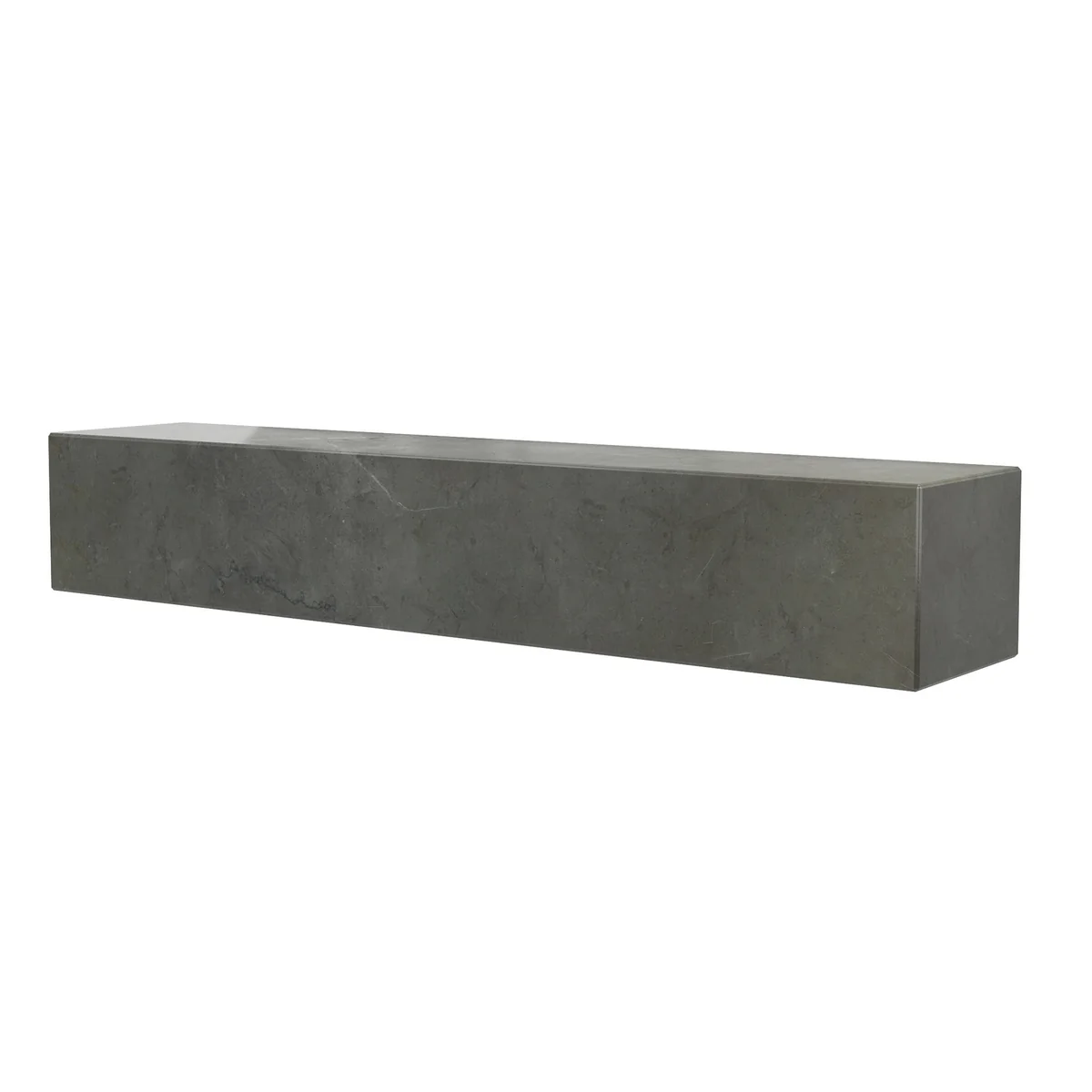 Das minimalistische Block-Profil des handgefertigten Regals ist aus Grey Kendzo geformt, einem reichen, brillant weißen, geäderten Marmor, den Audo wegen seiner inhärenten Schönheit und lichtreflektierenden Eigenschaften ausgewählt hat.
