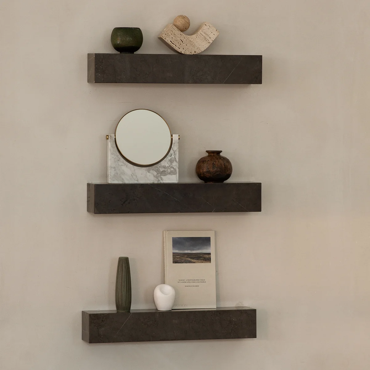 Aufgrund der Natur des Marmors ist jedes Regal ein Unikat. Hinter dem Design steckt Norm Architects.