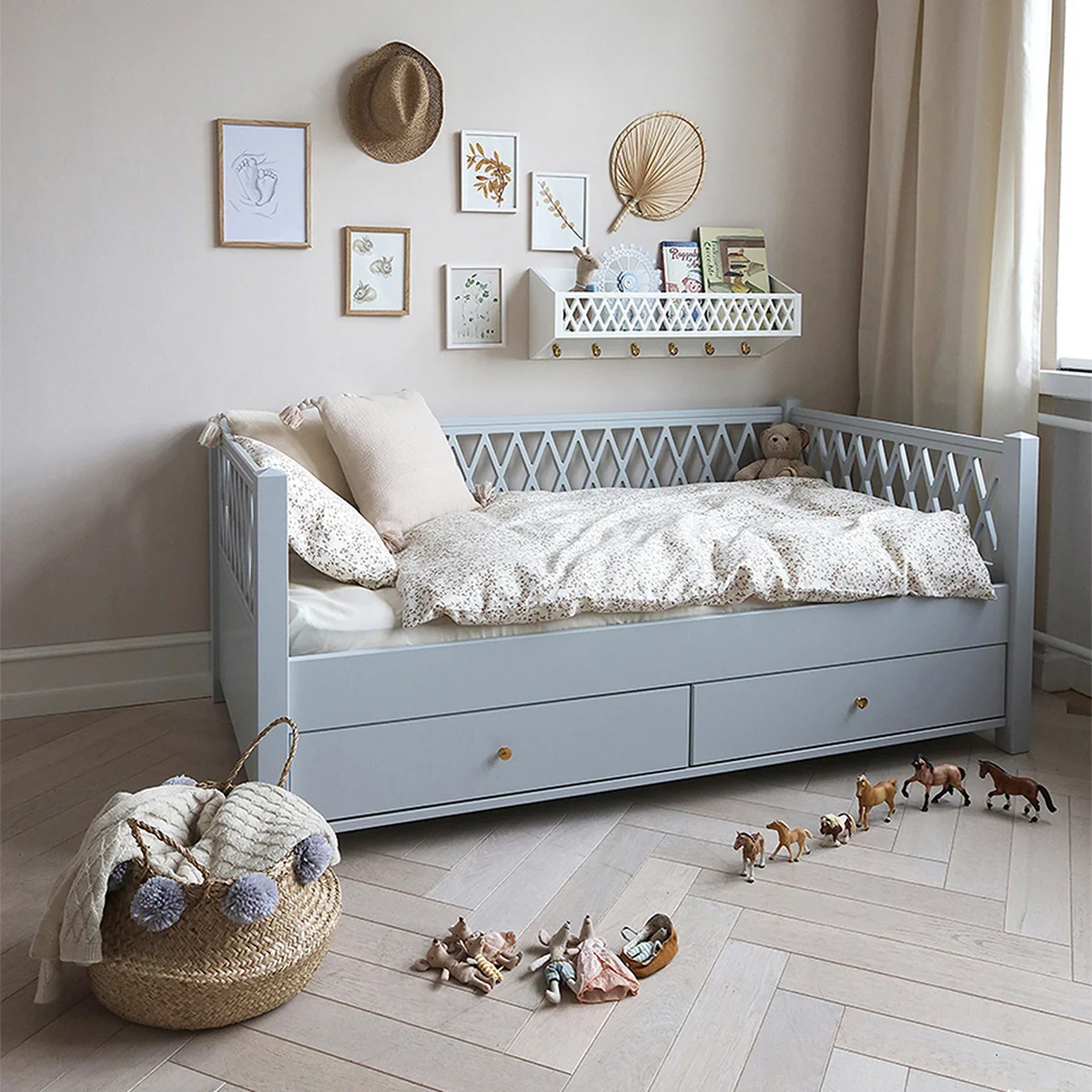 Das Rautendesign verbreitet eine mystische und zauberhafte Stimmung und Atmosphäre im Zimmer und eröffnet den Kindern einen Zugang zu neuen Ideen und Vorstellungen bezüglich unbekannter Formen.