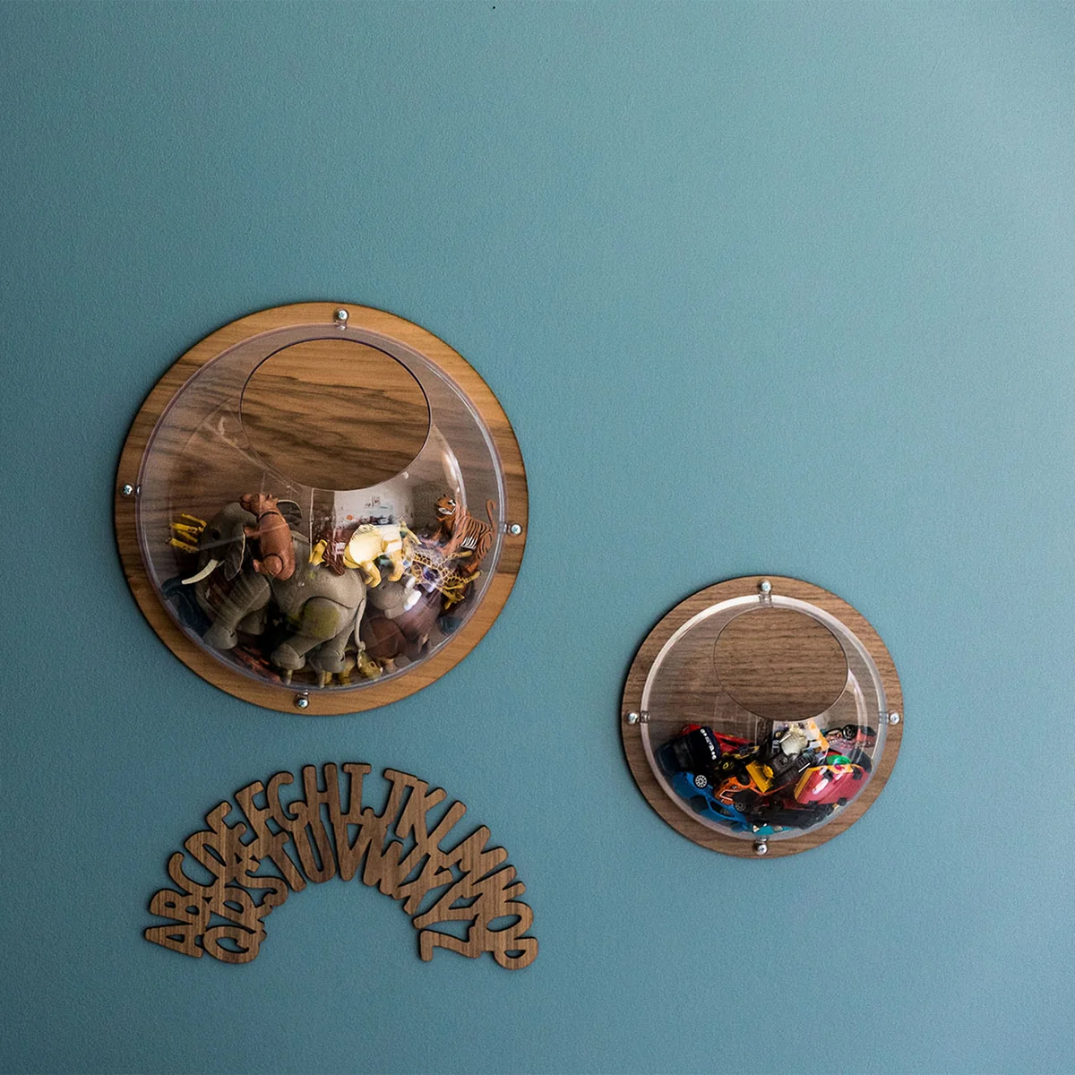 Wanddisplay Orion ist eine dekorative Aufbewahrung für jedes Ambiente. Die transparenten Halbkugeln aus thermoplastischem Kunststoff werden einfach an gewünschter Stelle an die Wand geschraubt. Durch eine große Grifföffnung kann Orion einfach mit Gegenständen alle Art befüllt werden. In der Küche kann Obst darin verstaut werden, im Flur finden Mützen und Handschuhe darin Platz und im Kinderzimmer lässt sich jede Menge Spielzeug darin aufbewahren. So fällt das Aufräumen leicht und alles ist an seinem Platz.