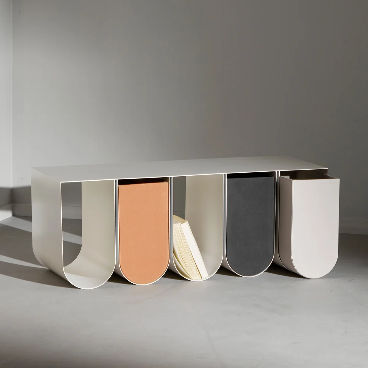 Das Curved Wandregal von Kristina Dam Studio setzt markante und ausdrucksstarke Akzente im Wohnraum. Multifunktional einsetzbar, kann es als Regal an die Wand montiert werden, aber auch im Stand auf dem Boden eingesetzt werden. Mit den kurvigen Aufbewahrungsrahmen ist das Regal ein Must Have und bietet reichlich Platz für die Tools im Badezimmer, im Flur, oder im Wohnzimmer. Als praktischer Beistelltisch kann er als Präsentationsfläche für schöne Vasen dienen, die das dänische Design des Regals akzentuieren und die wohnliche Hygge in der Einrichtung wirken lassen. Das Curved Wandregal ist in unterschiedlichen Ausführungen erhältlich.