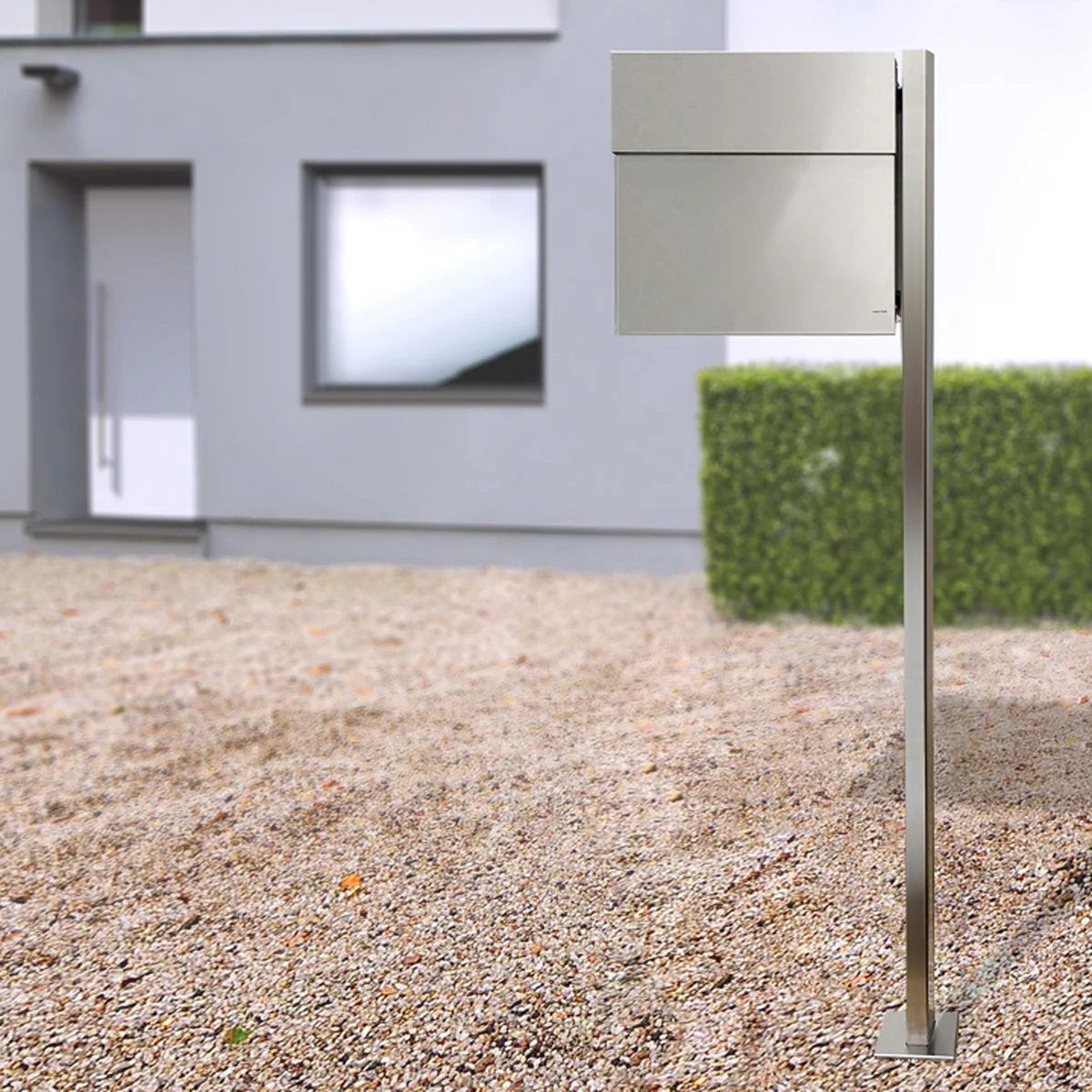 Unter der großzügigen oberen Klappe ist die Post vor Wind und Wetter geschützt. Optional ist der Letterman IV auch mit einem Pfosten erhältlich.