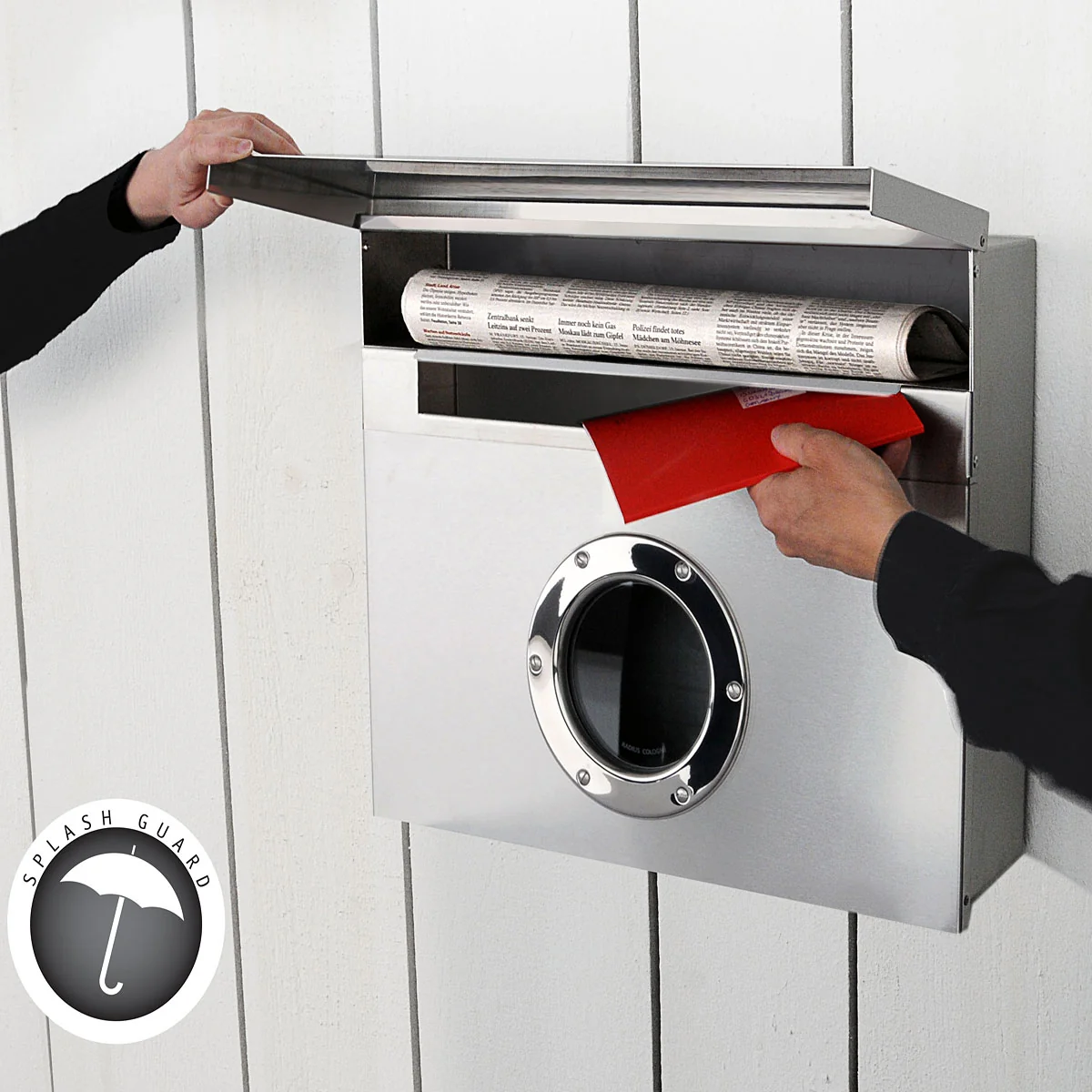 Unter der großzügigen oberen Klappe befindet sich das praktische Fach für Zeitungen und Zeitschriften. So ist alles in Großformat vor Wind und Wetter geschützt. Auch ein Urlaub oder ein großes Postaufkommen sind kein Problem mehr dank seiner Größe.