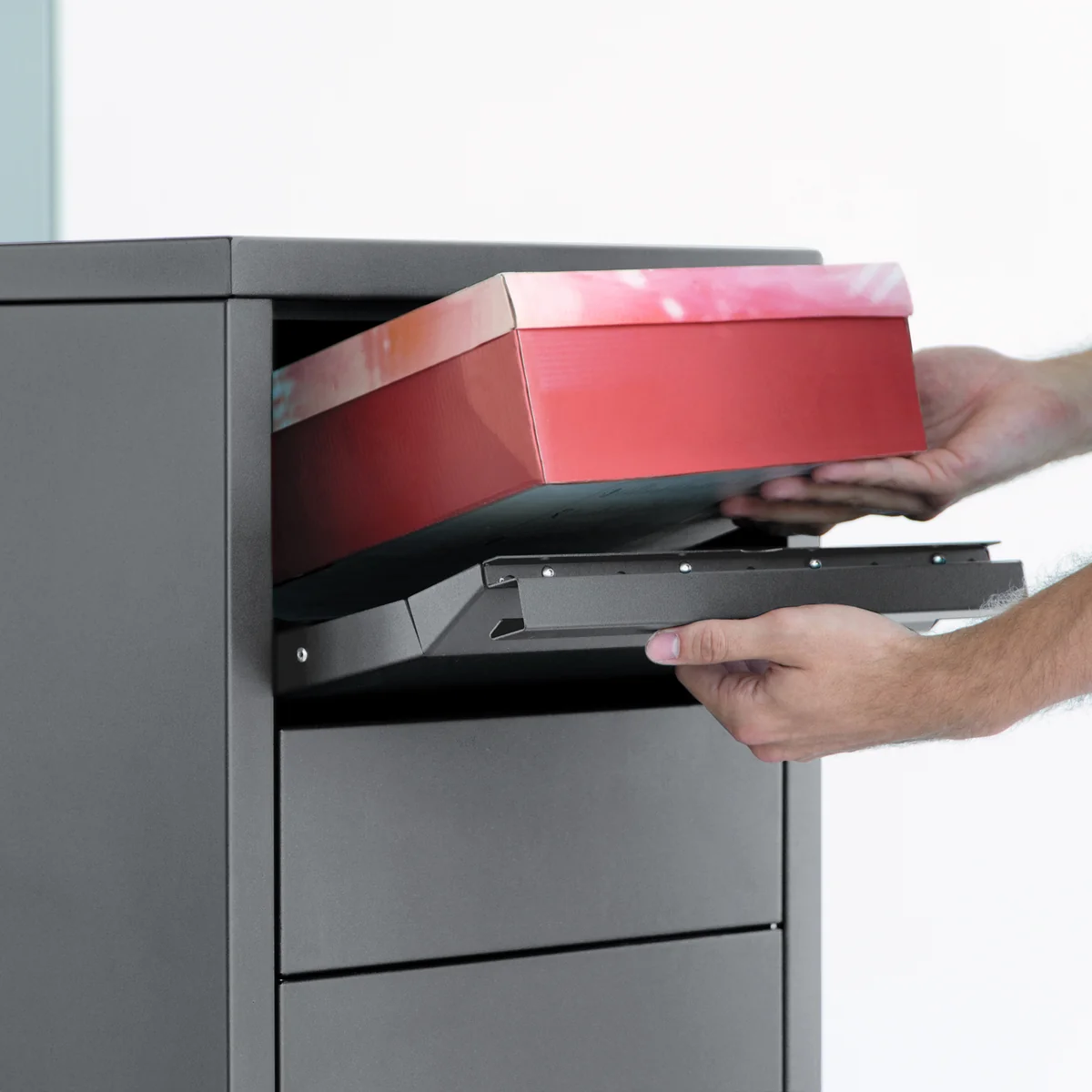 Die Standing Ovation Variante ist mit einer großen Einwurfklappe ausgestattet und bietet nun auch Platz für Pakete oder Aktenordner. Somit ist das lästige Warten auf den Paketboten hinfällig und man muss von nun an nicht mehr zu Hause sein, um seine Bestellung zu erhalten.