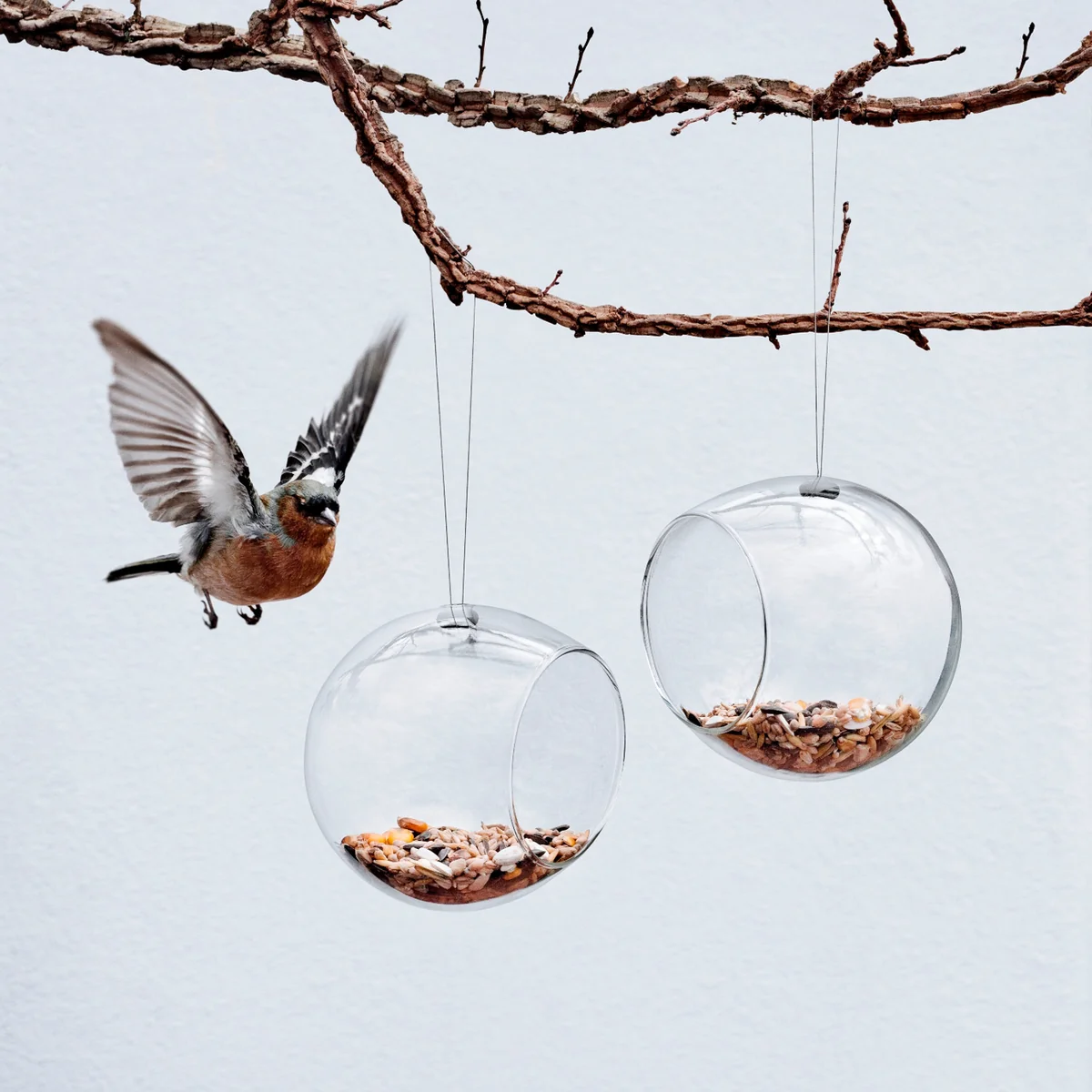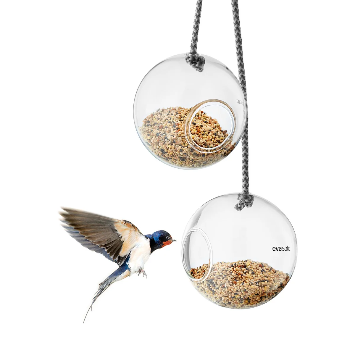 Die Futterkugeln von Eva Solo wurden optisch den "schwebenden" Webervogelnestern nachempfunden. Im Gegensatz zu ihrem optischen Vorbild bestehen die Eva Solo Futterkugeln jedoch aus klarem Glas, so dass die Vögel ungestört beobachtet werden können. Die Bälle sind charmant und dekorativ und bestens dazu geeignet im Garten oder auf dem Balkon angebracht zu werden.