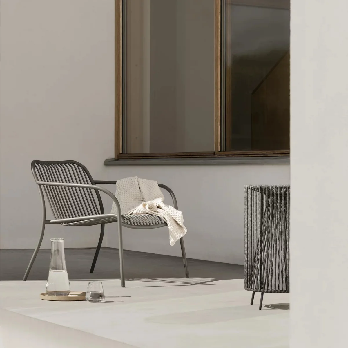 Der Yua Wire Outdoor Loungesessel von Blomus verkörpert die raffinierte Designsprache des renommierten Studios kaschkasch, das sich darauf konzentriert hat, formalere Gartenmöbel zu schaffen, die dennoch eine eigene Identität besitzen. Mit einem Fokus auf die subtile Integration von fließenden Linien um die Hauptstreben herum, schafft die Yua-Familie eine kohärente Ästhetik, die sich in jedem Element der Serie widerspiegelt. Die Serie bietet eine Vielzahl von Kombinationsmöglichkeiten, darunter klassische Stühle mit oder ohne Armlehnen, sowie breitere und entspanntere Lounger, die sowohl in Flachstahl als auch mit filigranen Metallsträben erhältlich sind. Ergänzt wird das Sortiment durch ein Loungesofa in der Yua Wire-Version. Von großen Esstischen bis hin zu kleinen Bistrotischen und niedrigen Loungetischen in verschiedenen Formen, lässt sich die Yua Serie perfekt an die individuellen Bedürfnisse und den Stil anpassen. Die Möbel sind in den Farben Silk Gray und Granite Gray erhältlich und können sowohl gestapelt als auch vielseitig kombiniert werden. Hergestellt aus langlebigem Stahl, der galvanisiert und mit einer hochwertigen wetterfesten Pulverbeschichtung versehen ist, bieten die Möbel eine hervorragende Strapazierfähigkeit im Outdoor-Bereich. Um ihre Langlebigkeit zu gewährleisten, wird empfohlen, die Möbel im Winter abzudecken, damit Sie lange Freude an ihnen haben können.