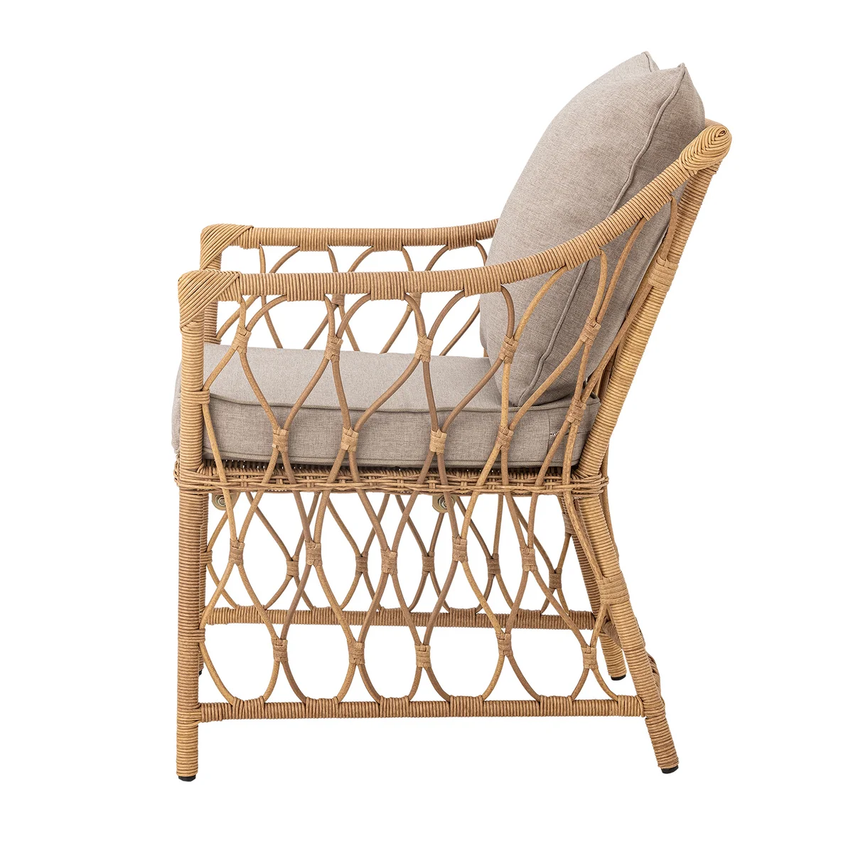 Der Belluce Loungestuhl von Bloomingville bietet entspannte Stunden im Garten oder auf der Terrasse. Das gewebte Poly-Rattan verleiht dem Stuhl eine natürliche Optik, während die Kissen mit Leinenstruktur für zusätzlichen Komfort sorgen. Besonders praktisch: Der passende Hocker lässt sich platzsparend unter dem Stuhl verstauen.