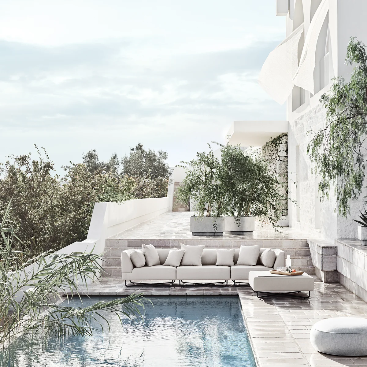 Die Orlando Kollektion bietet ein Angebot an exquisiten Stoffen für den Außenbereich, die für ihre außergewöhnliche Haltbarkeit und Farbechtheit bekannt sind und in einer Palette von ruhigen Farbtönen erhältlich sind.
