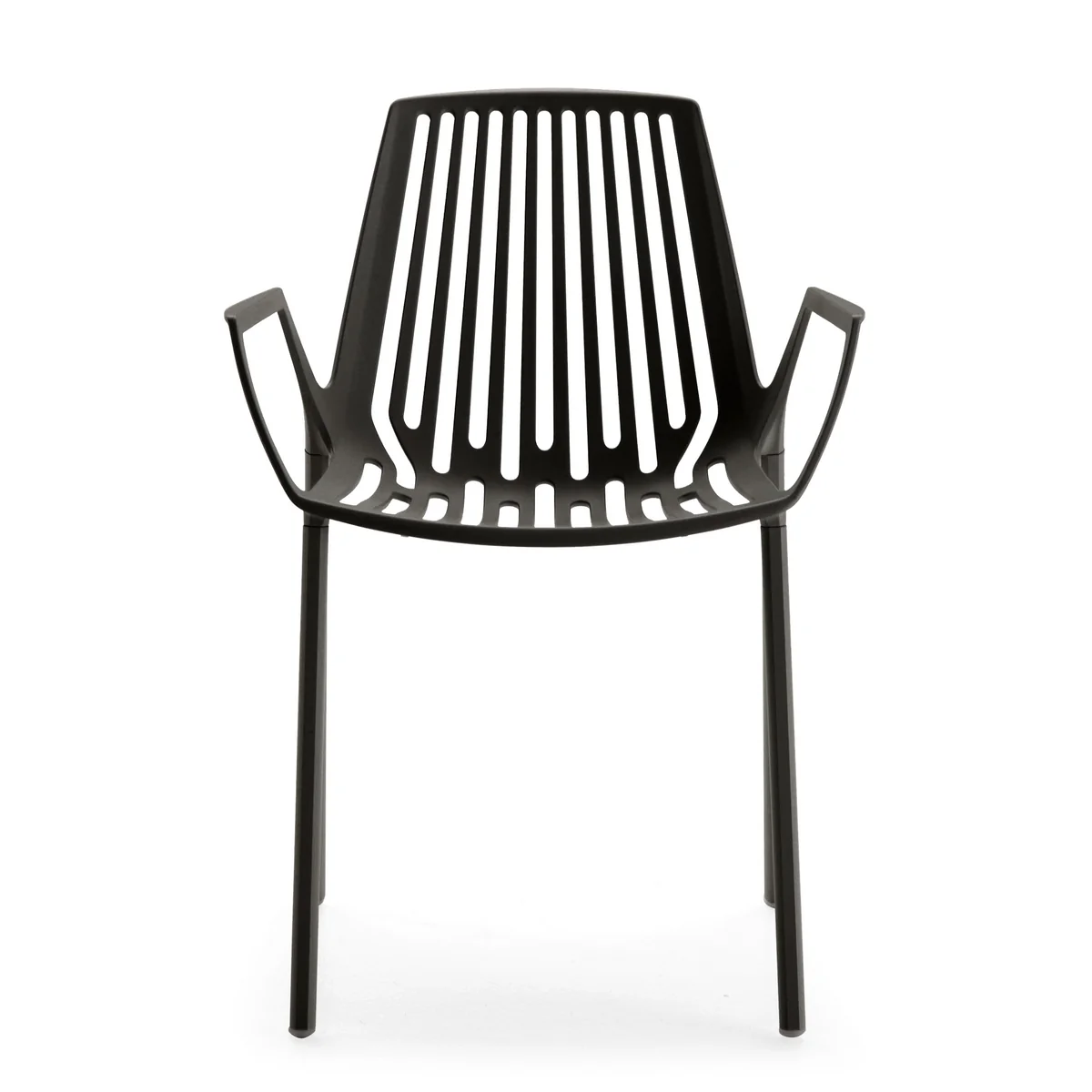 Dank der verwendeten Materialien verkörpern die Möbel nicht nur optisch eine gewisse Leichtigkeit: Armlehnen sowie Sitz- und Rückenlehne bestehen aus Aluminium-Druckguss. Die Beine sind aus extrudiertem, fließgepresstem Aluminium gefertigt. Somit ist der Rion Stuhl vom italienischen Hersteller Fast geradezu für den Einsatz im Außenbereich prädestiniert.