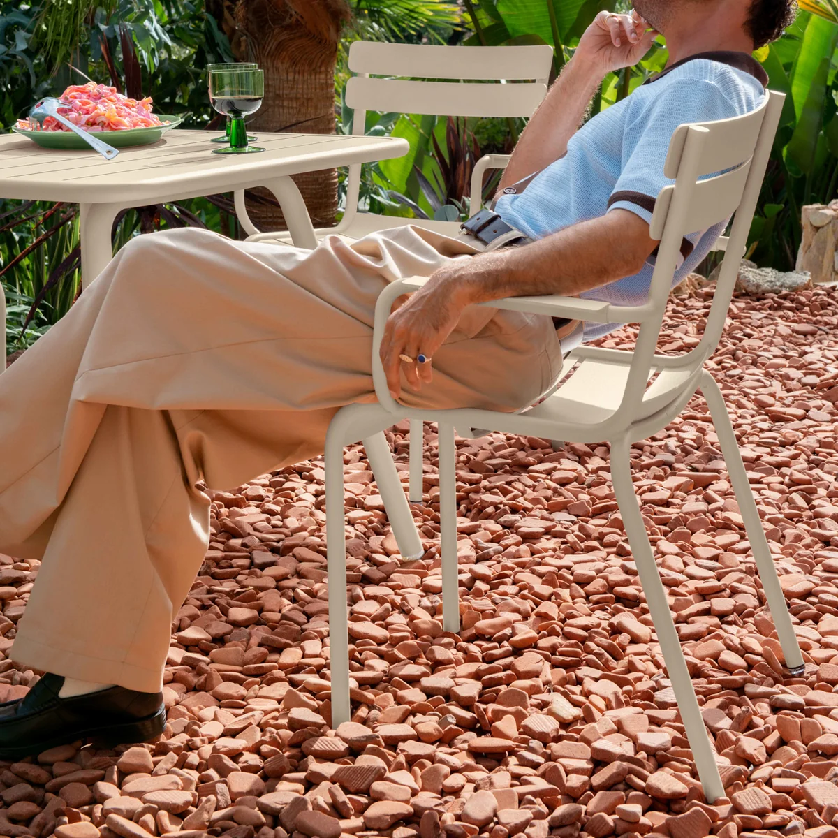 Qualitativ sind die Luxembourg Gartenmöbel nicht nur hochwertig verarbeitet, sondern bestehen auch aus recycelten und recycelbaren Materialien. Die umweltverträgliche Produktion ist für Fermob ein wichtiges Anliegen und Teil der Unternehmensphilosophie und so produziert Fermob Möbelstücke, die nicht nur in der Natur stehen können, sondern in Harmonie mit ihr existieren.