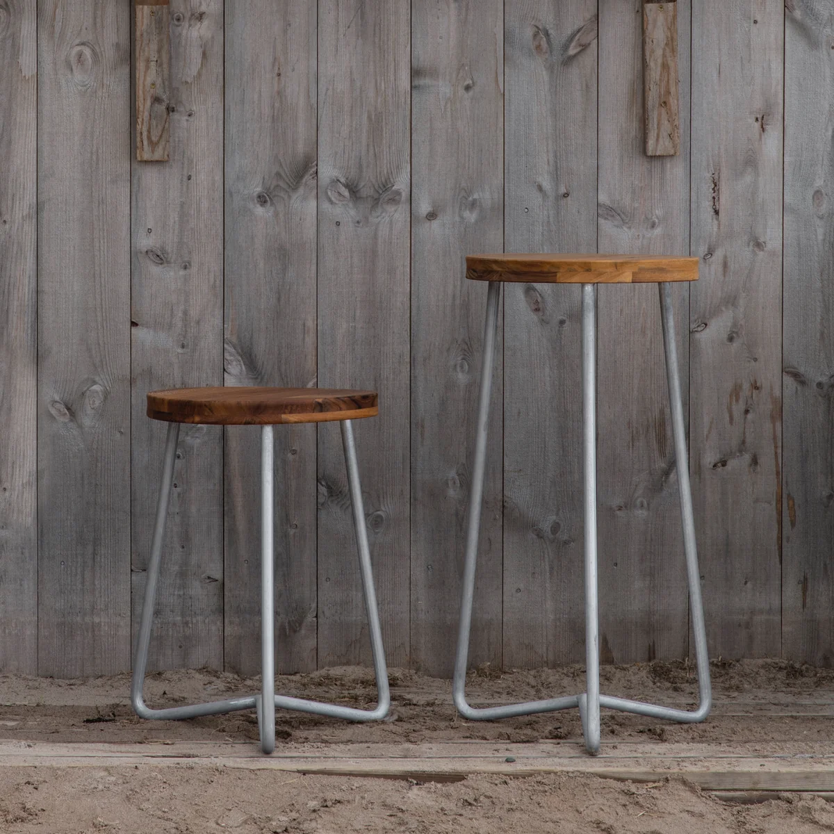 Outdoor Barhocker aus feuerverzinktem Stahl und Teakholz