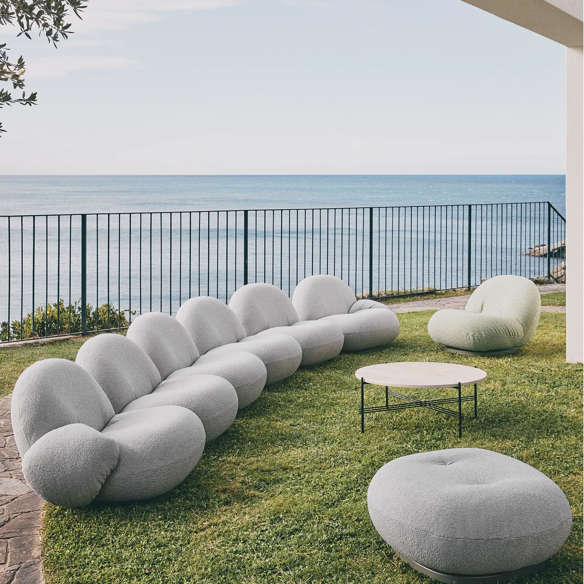 Das Pacha Outdoor Sofa des dänischen Herstellers Gubi passt sich dank seiner abgerundeten Form harmonisch an den Körper an. Das moderne Sofa mit Tellerfüßen wird mit Dedar Belsuede bezogen. Der Bezugstoff besteht aus 100% Polypropylen. Das Pacha Outdoor Sofa kann ganz nach Ihren Belieben im Indoor- oder Outdoor-Bereich genutzt werden. Es ist in unterschiedlichen Sitz-Ausführungen erhältlich.