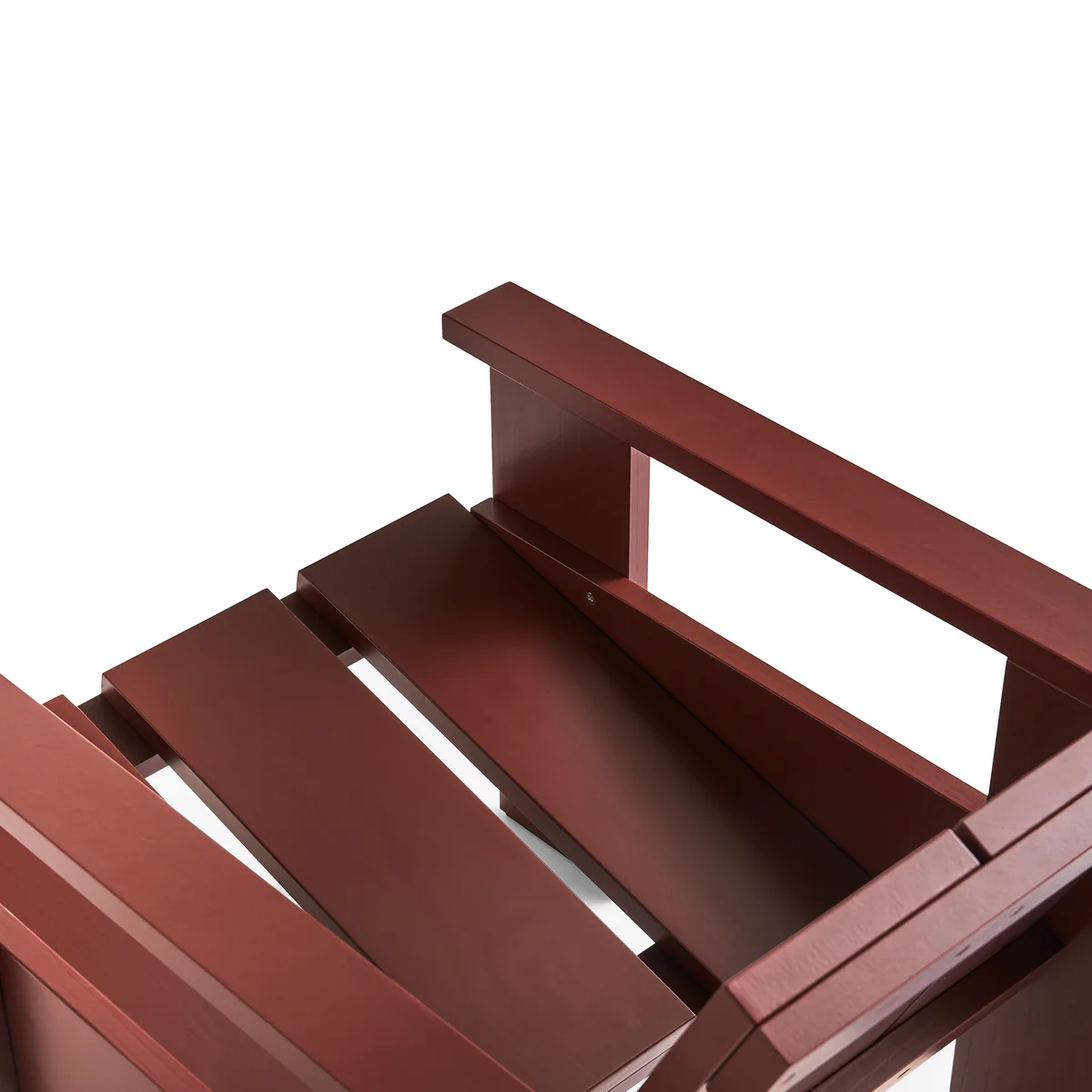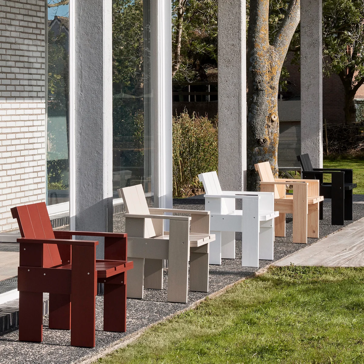 Der Crate Lounge Chair aus dem Hause HAY gehört zu den Klassikern, die neu aufgelegt wurden. Die Crate Kollektion des niederländischen Architekten und Designers Gerrit Rietveld, wurde 1934 entworfen. Das Ziel war es überschüssige Holzkisten für den Transport zu nutzen. Der Crate Lounge Chair wurde mit starkem Fokus auf dem Originaldesign hergestellt und weist die gleichen, überaus präzise ausbalancierten Proportionen auf. Die transparente Konstruktion ermöglicht einen optimierten Montageprozess. Die niedrigen Elemente, die sanft abfallende Rückenlehen und die Sitzfläche mit den stützenden Armlehnen verleihen dem Stuhl seine Einfachheit. Crate Lounge Chair bietet Komfort, ohne dabei viel Platz zu beanspruchen. Er wird aus massivem Kiefernholz gefertigt und kann dank seiner Lackierung auf Wasserbasis kann der Lounge Stuhl sowohl im Innen- als auch Außenbereich platziert werden. In unterschiedlichen Farben erhältlich.