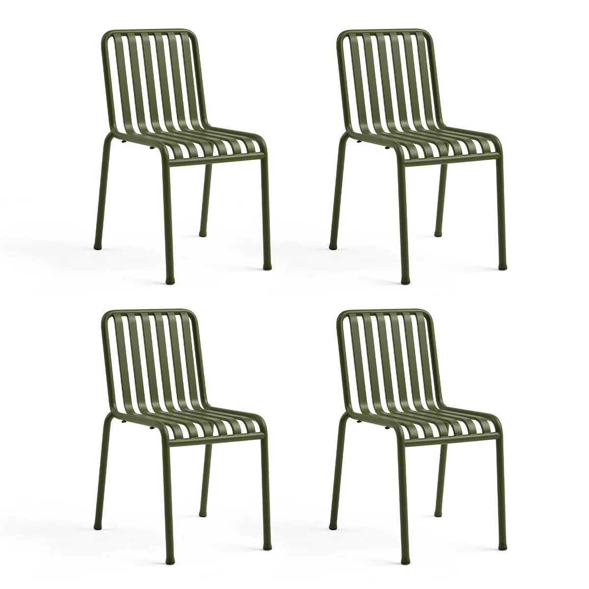 Die Palissade Stuhl von HAY wurde von den Design-Brüdern Ronan und Erwan Bouroullec entworfen und ist ein funktionelles sowie ästhetisches Möbelstück für den Outdoor-Bereich. Durch die lattenförmig angeordnete Sitzfläche fließt Regenwasser durch die Aussparung zwischen den Streben problemlos ab, sodass der Stuhl auch bei schlechtem Wetter problemlos draußen bleiben kann.