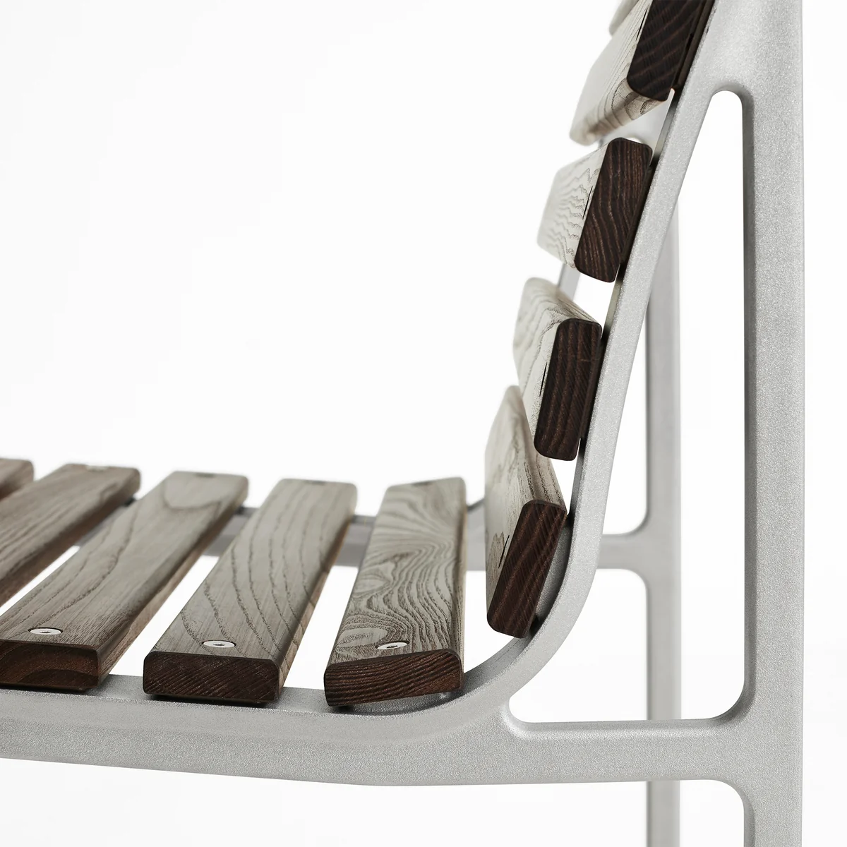 Der Traverse Outdoor Stuhl von HAY, entworfen von Erwan Bouroullec, überzeugt durch ein zeitloses Design und eine robuste Konstruktion. Sein druckgegossener Aluminiumrahmen und die lattenartige Sitzfläche aus hitzebehandeltem Eschenholz verleihen dem Stuhl Stabilität und eine natürliche, ansprechende Optik. Mit der Zeit entwickelt das Holz eine dezente Patina, die den Charakter des Möbels zusätzlich unterstreicht. Dank seiner ausgewogenen Proportionen und bequemen Sitzfläche eignet sich der Stuhl sowohl für den Einsatz in privaten Gärten als auch in öffentlichen Außenbereichen. Er lässt sich mühelos mit anderen Stücken der Traverse-Kollektion kombinieren und schafft so eine einladende Atmosphäre für gemeinsame Stunden im Freien.
