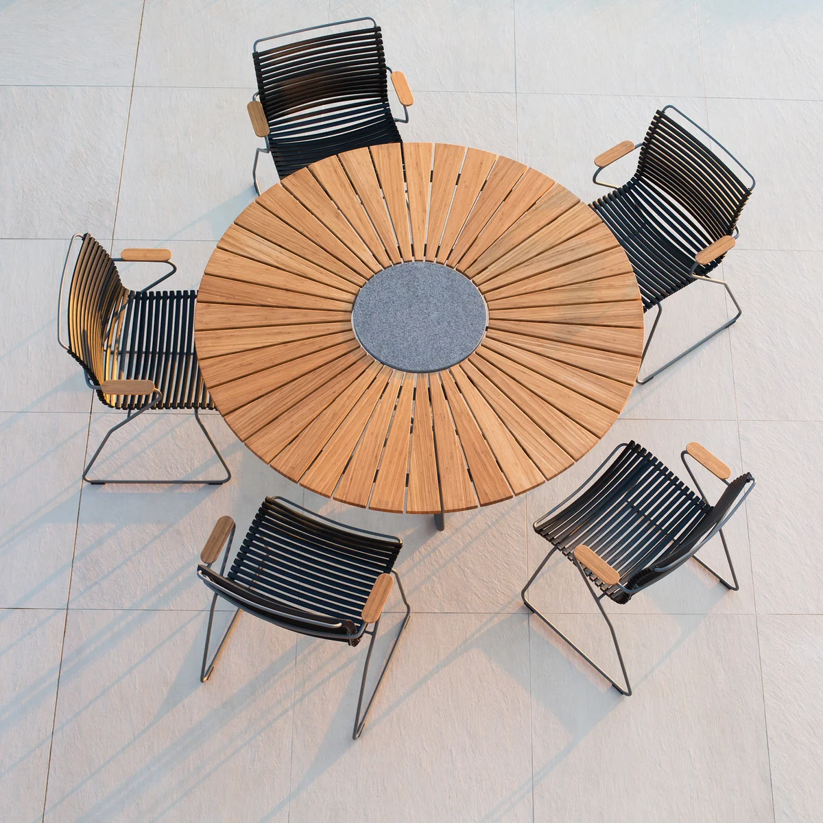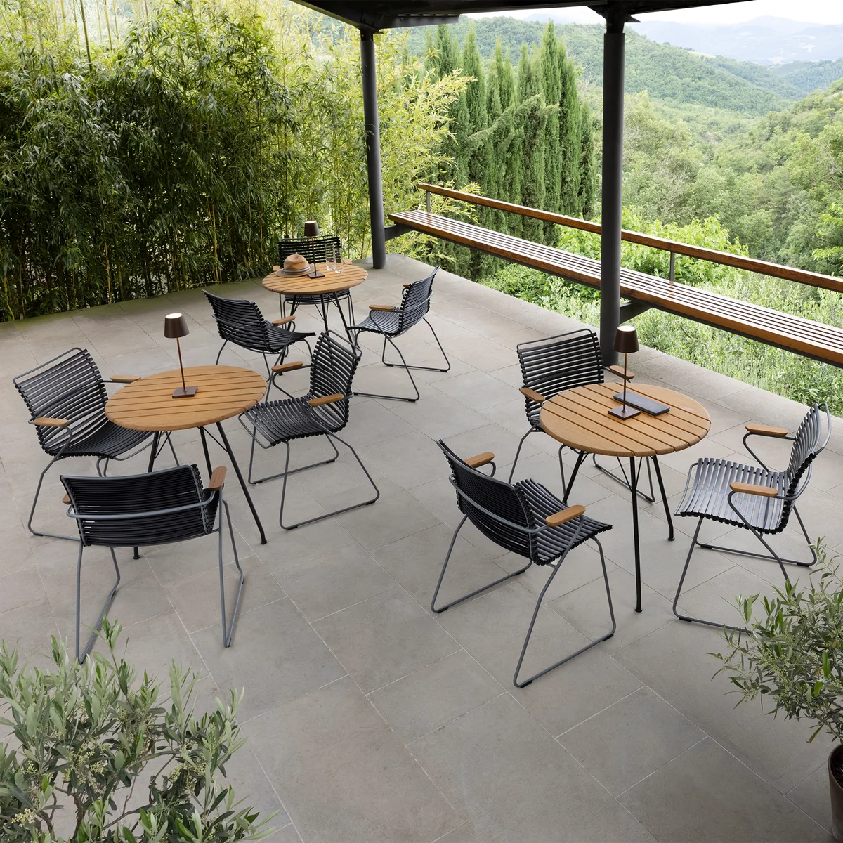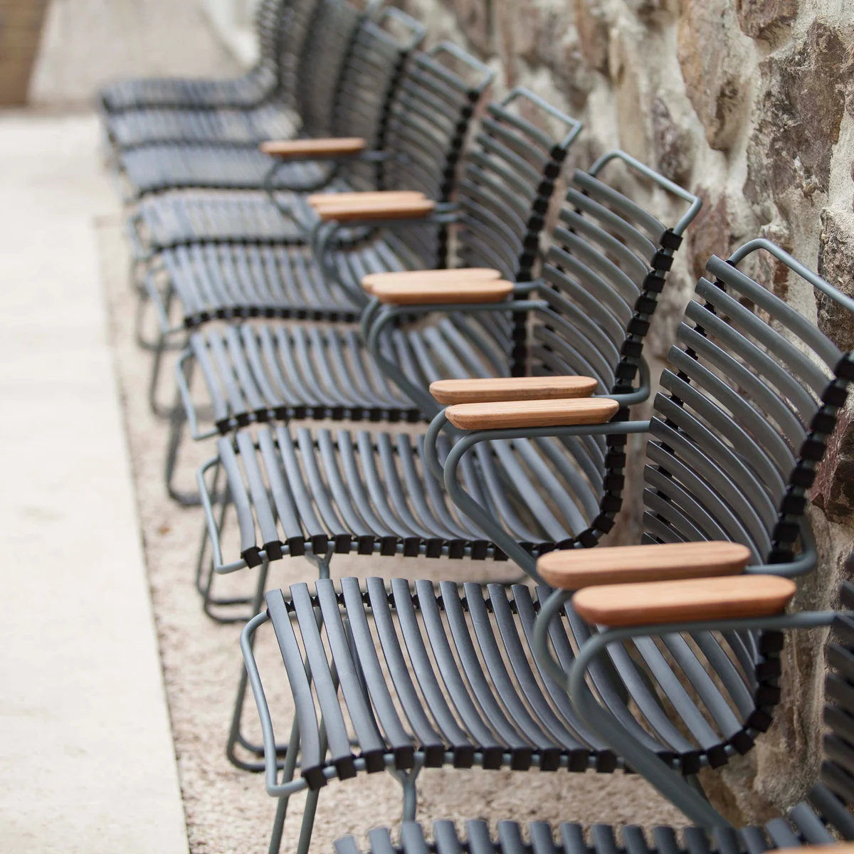 Der HOUE - CLICK Outdoor Dining Armlehnstuhl mit niedriger Lehne ist die perfekte Wahl für stilvolles und bequemes Sitzen im Freien. Mit seinem eleganten und modernen Design fügt sich dieser Stuhl harmonisch in jede Garten- oder Terrassengestaltung ein. Die niedrige Rückenlehne sorgt für eine entspannte Sitzhaltung, während die ergonomisch geformten Armlehnen zusätzlichen Komfort bieten. Die wetterfesten Lamellen aus UV-beständigem Kunststoff sind in verschiedenen attraktiven Farben erhältlich und lassen sich leicht reinigen, was die Pflege des Stuhls besonders unkompliziert macht. Das robuste Gestell aus pulverbeschichtetem Metall garantiert Langlebigkeit und Stabilität, sodass der CLICK Outdoor Dining Armlehnstuhl sowohl funktional als auch ästhetisch überzeugt. Ob beim gemütlichen Abendessen im Freien oder beim entspannten Nachmittagstee, dieser Stuhl bietet höchsten Sitzkomfort und zeitlose Eleganz.