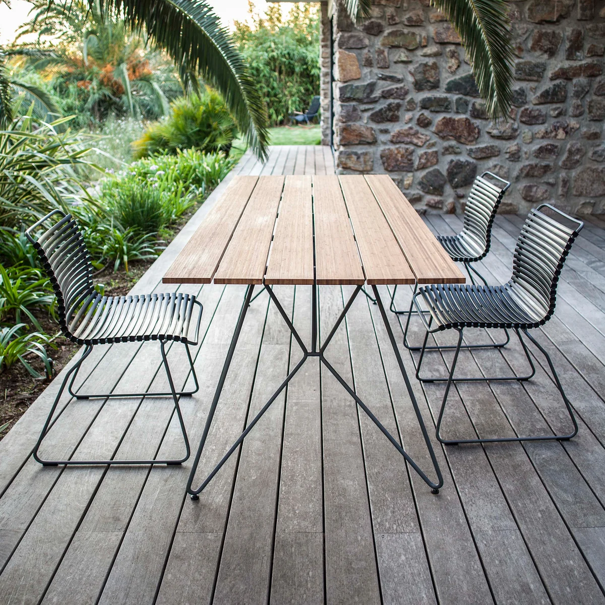 Der CLICK Outdoor Dining Stuhl von HOUE besticht durch sein schlichtes, ehrliches und ergonomisch durchdachtes Design. Ohne Armlehnen oder wahlweise mit Armlehnen präsentiert er sich als harmonisches Element, das sich rund um den Tisch wiederholt und so für ein stimmiges Gesamtbild sorgt. Die innovativen Kunststofflamellen sind präzise konzipiert – sie bieten dank der optimalen Balance aus Festigkeit und Flexibilität auch ohne Polsterung hervorragenden Sitzkomfort. Besonders praktisch: Die Lamellen können einfach per Klick ausgetauscht werden, sodass Sie das Erscheinungsbild des Stuhls individuell anpassen oder verschiedene Farbkombinationen miteinander mischen können. Der CLICK Dining Chair ist in 11 attraktiven Farben erhältlich und überzeugt zudem durch seine stapelbare Bauweise, die ihn ideal für den täglichen Einsatz macht.