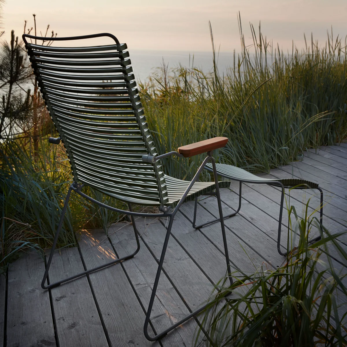 Der CLICK Position Outdoor Armlehnstuhl von HOUE ist für alle gemacht, die einfach bequem sitzen möchten. Mit seiner verstellbaren Rückenlehne können Sie sich zurücklehnen, um zu entspannen, oder einen weiten Überblick genießen – ganz nach Ihren individuellen Bedürfnissen. Die ergonomisch gestalteten Armlehnen unterstützen eine angenehme Sitzhaltung, während die robuste, wetterfeste Konstruktion dafür sorgt, dass der Stuhl auch im Freien langlebig und pflegeleicht bleibt.
