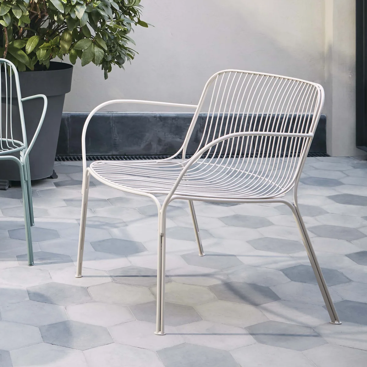Der Hiray Lounge Chair von Ludovica + Roberto Palomba für das italienische Label Kartell besticht mit seinem minimalistischen Design mit raffinierten Details. Der Stuhl aus gelötetem Draht bietet klare Linien und ist überaus funktional. Hiray kann ideal im Außenbereich platziert werden. Er ist in einer Vielzahl von Farben erhältlich.