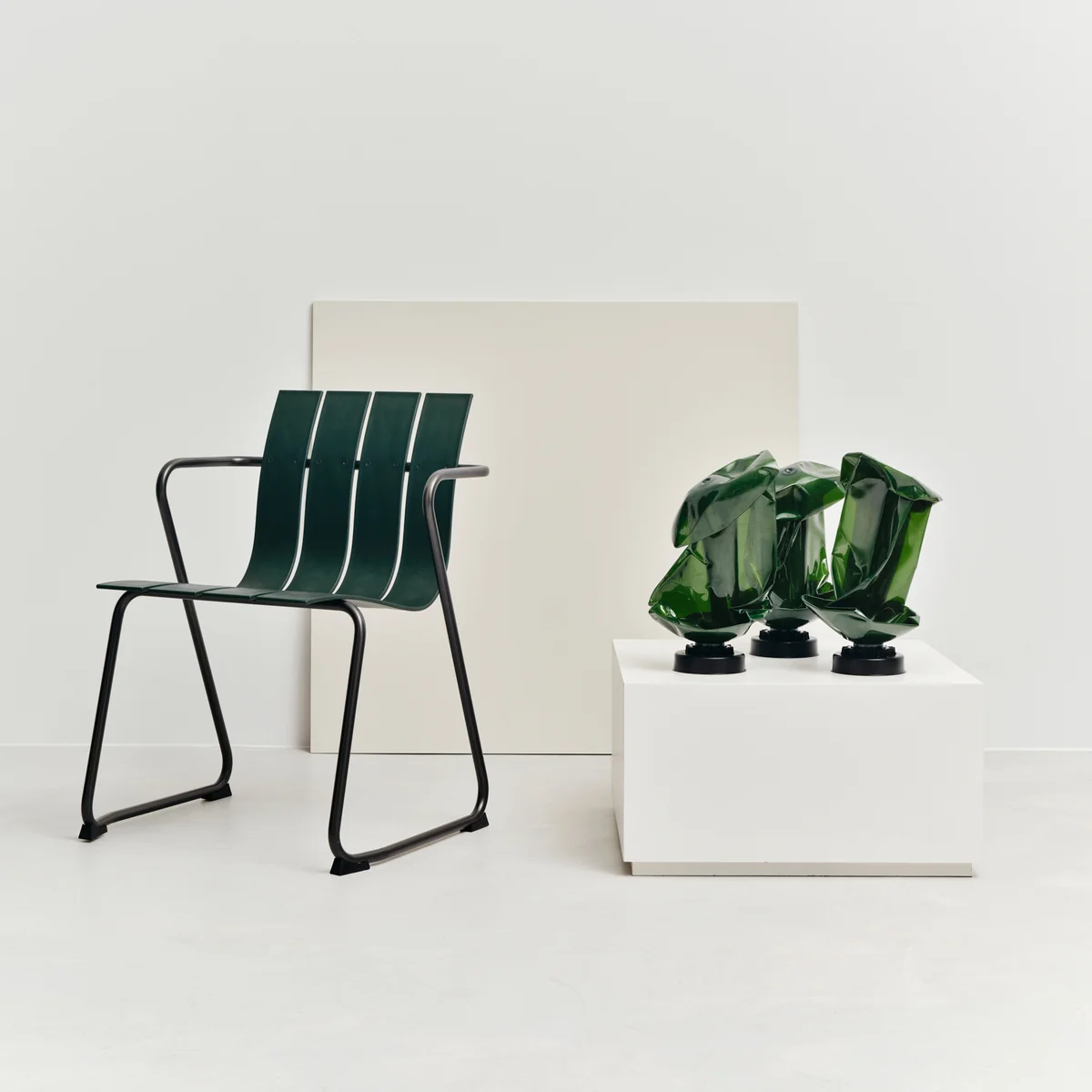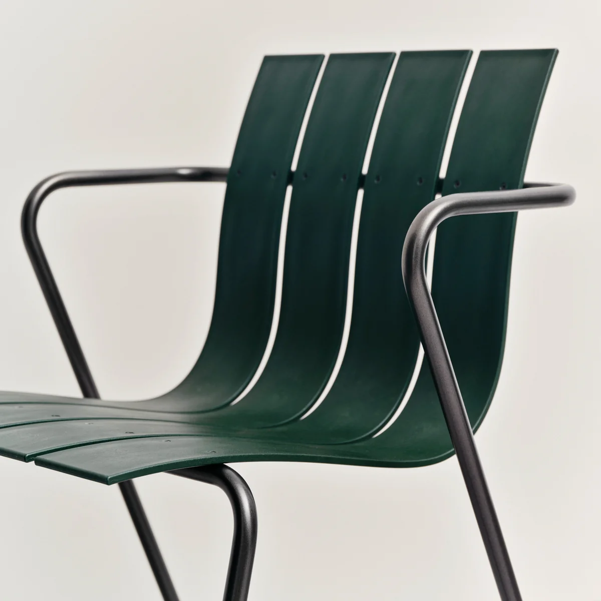 Mater benutzt für den Stuhl recyceltes Plastik von Plastix, einem der weltweit einzigen Unternehmen für mechanisches Recycling. Plastix verwandelt weggeworfene Fischernetze, Schleppnetze, Seile und andere Produkte von Kunststoffabfällen in wertvoll recycelte Kunststoffrohstoffe, sogenanntes "Green Plastics". Für einen Stuhl werden ca. 960 g Meereskunststoffabfälle verwendet.