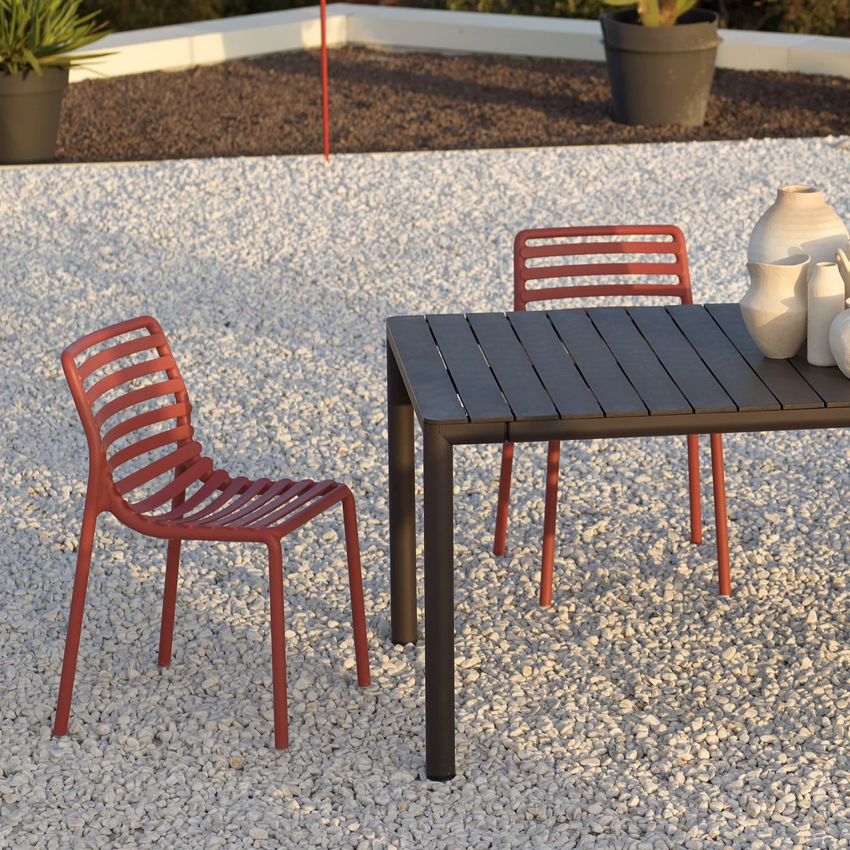 Der Doga Bistro Stuhl von Nardi ist eine moderne One-Piece-Sitzgelegenheit, die aus glasfaserverstärktem Kunststoff besteht. Durch das robuste und langlebige Material, ist der Stuhl perfekt für den Outdoor-Gebrauch und kann farbenfrohe Akzente auf der Terrasse, dem Balkon oder im Garten bilden.