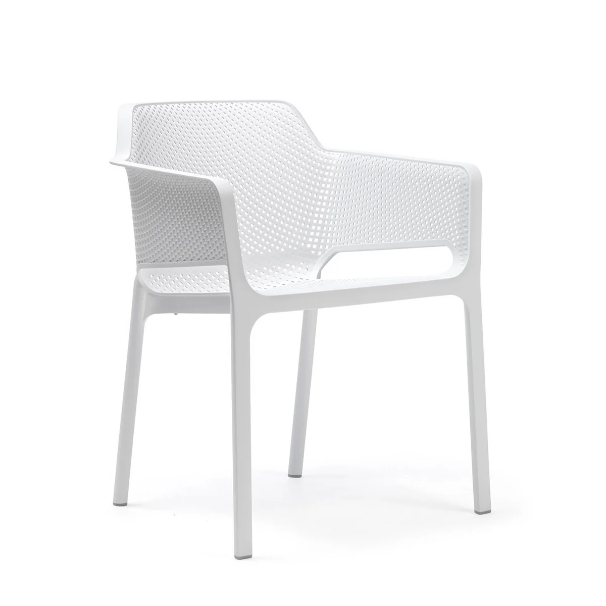 Der Net Armlehnstuhl des italienischen Familienunternehmens Nardi macht sich hervorragend im Garten, auf der Terrasse oder auf dem Balkon und sorgt mit seiner großzügigen Sitzfläche sowie den Armlehnen für Komfort. Gefertigt ist der Armlehnstuhl aus durchgefärbtem, recycelbarem Fiberglas-Polypropylen, das sich durch sein geringes Gewicht auszeichnet, UV-beständig ist und jeder Witterung standhält.